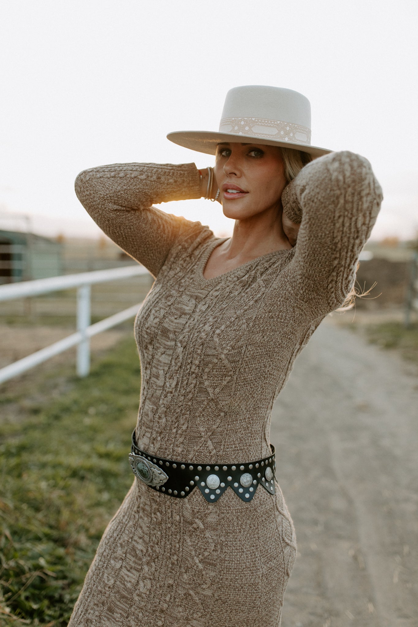 The Gallup Belt by Tasha Polizzi has a scalloped rectangular buckle with a cutout horse design and etched floral detailing.