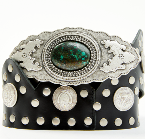 - Oval turquoise-embedded buckle