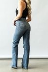 A high-rise stovepipe jean with a wide leg and raw hem, the Olivia is the perfect everyday jean. Made from our innovative tri-blend denim for maximum wearability and rebound, this lightweight jean is accented with our iconic Longhorn logo on both back pockets. Fabric: 82% Cotton | 15% Polyester | 3% ElastineFit: High Rise, Stove Top, Wide Leg with a Raw HemFit Tip: Olivia is most comparable to Sarah in the waist. You are able to size down from your Kimes Ranch size. Olivia also runs long with a raw hem.Details: Hand sanding on light wash denim with whisker detailConstruction: 11.5 Oz. Denim