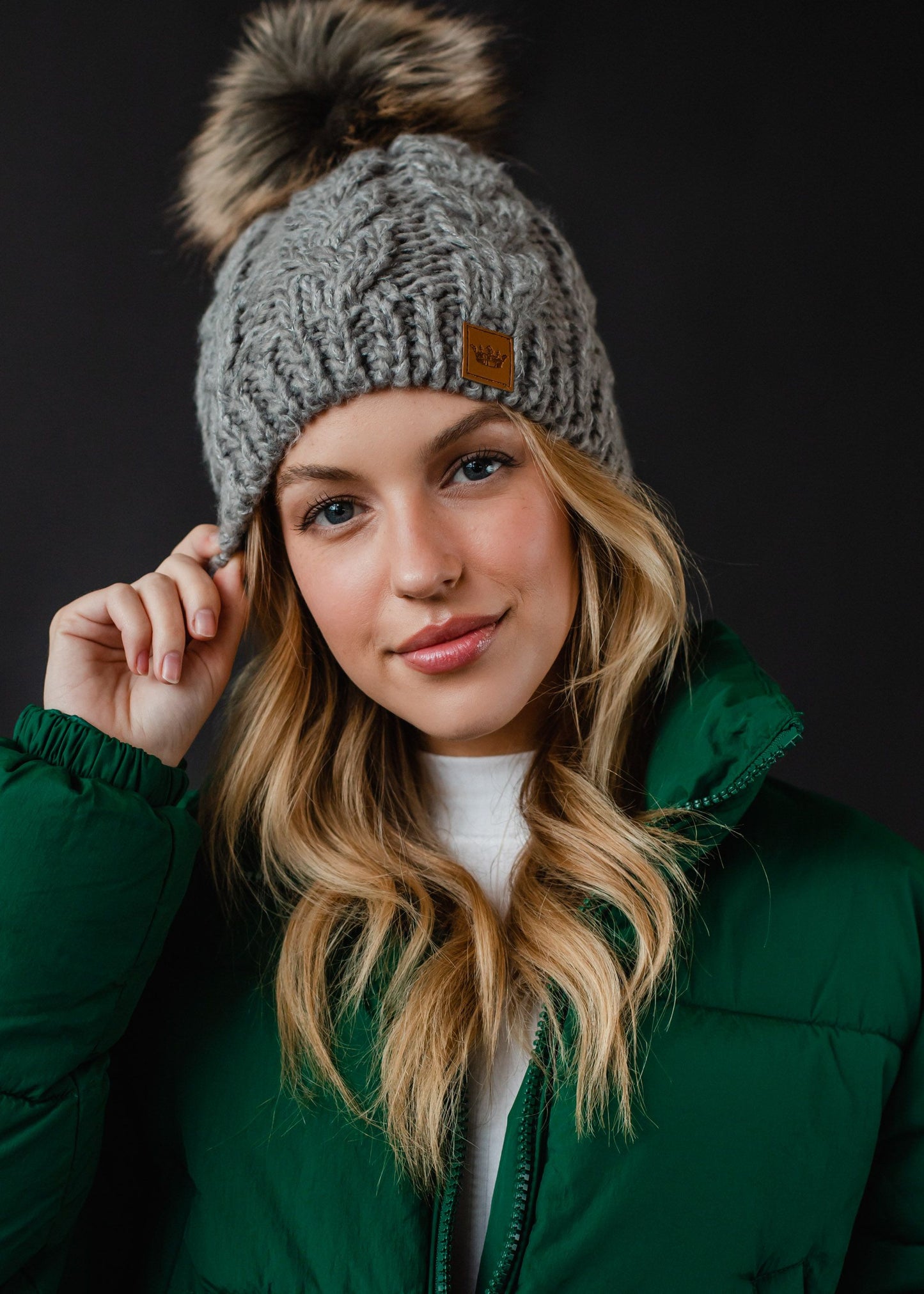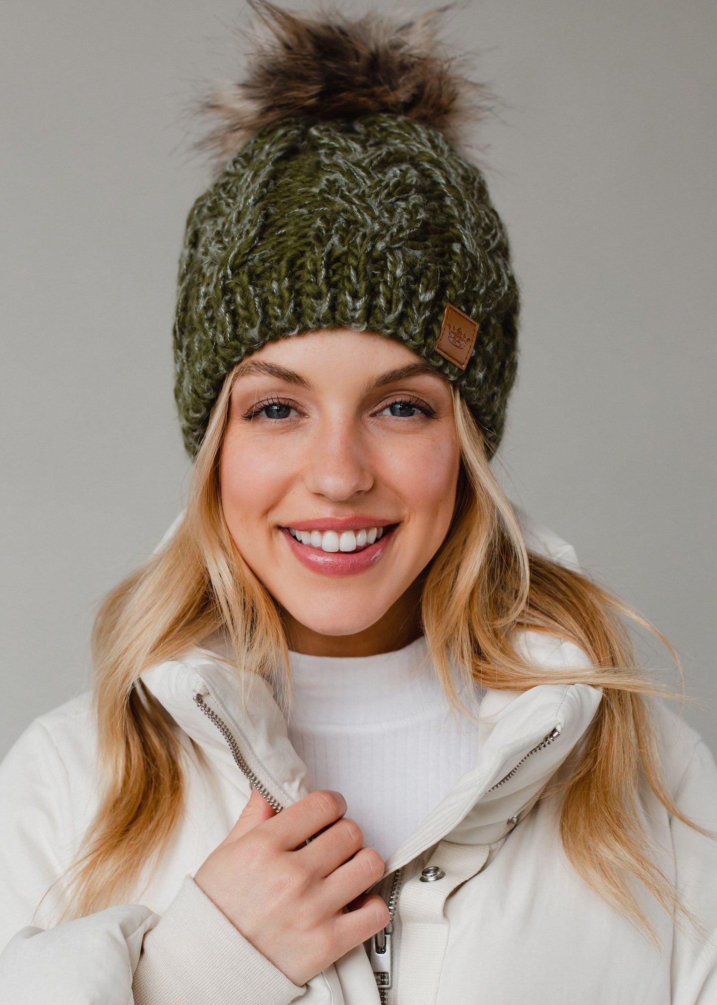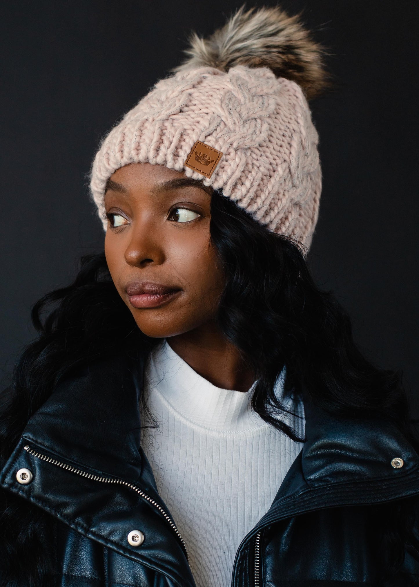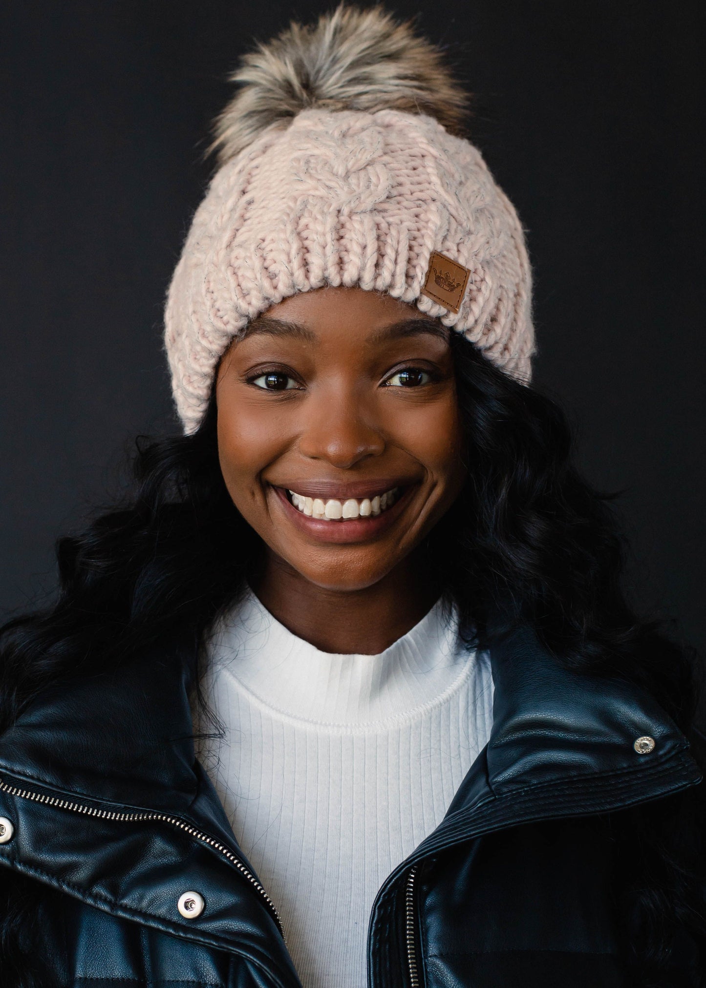 PANACHE Cable Knit Pom Hat