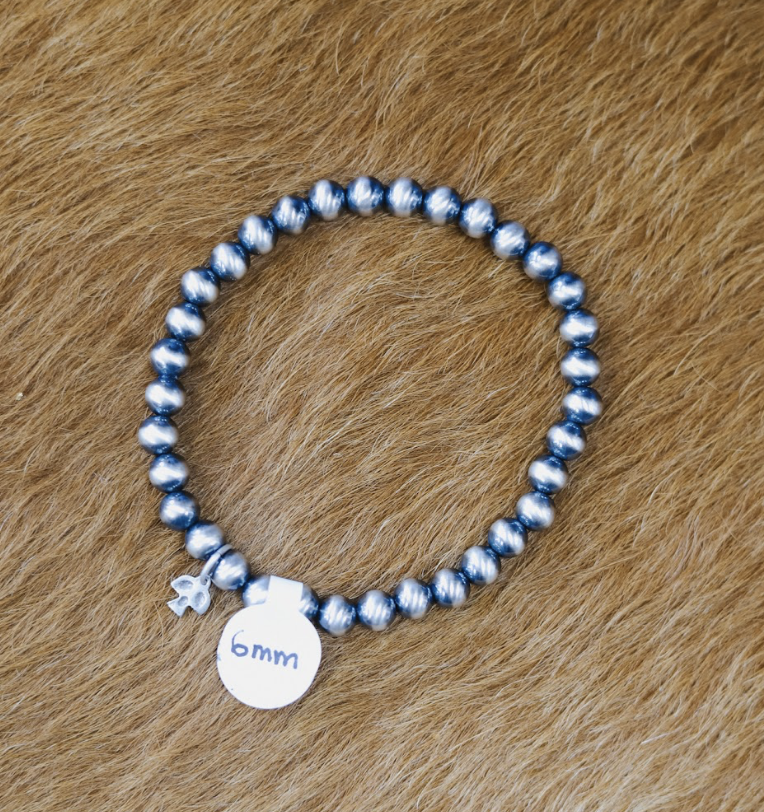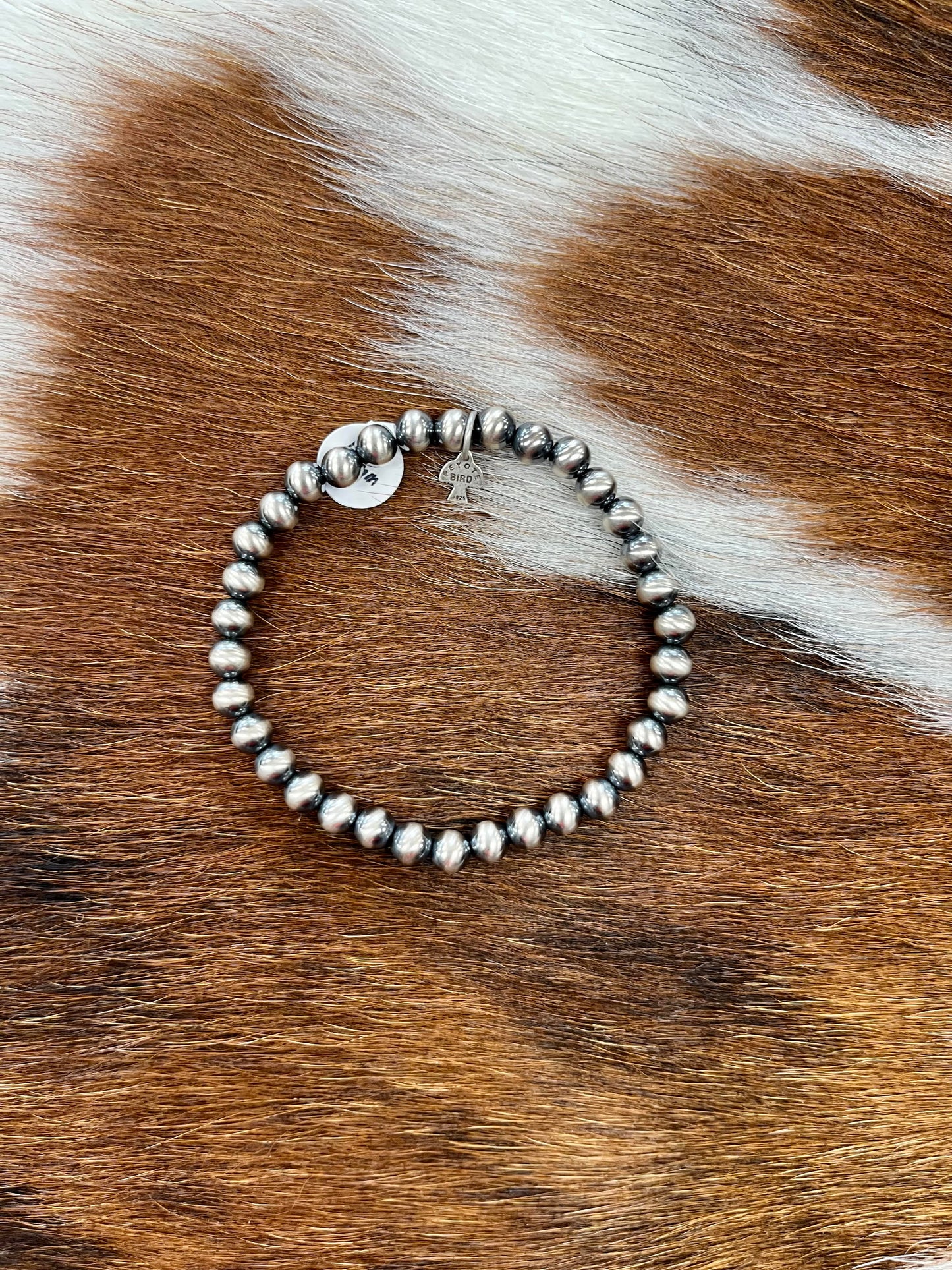 This Navajo Pearl Bracelet adds a touch of Southwest flavor to your accessory collection. The 6mm beads are handmade from sterling silver and create a versatile, yet unique piece that pairs perfectly with any outfit. Embrace your western style with this stunning Navajo Pearl Bracelet.
