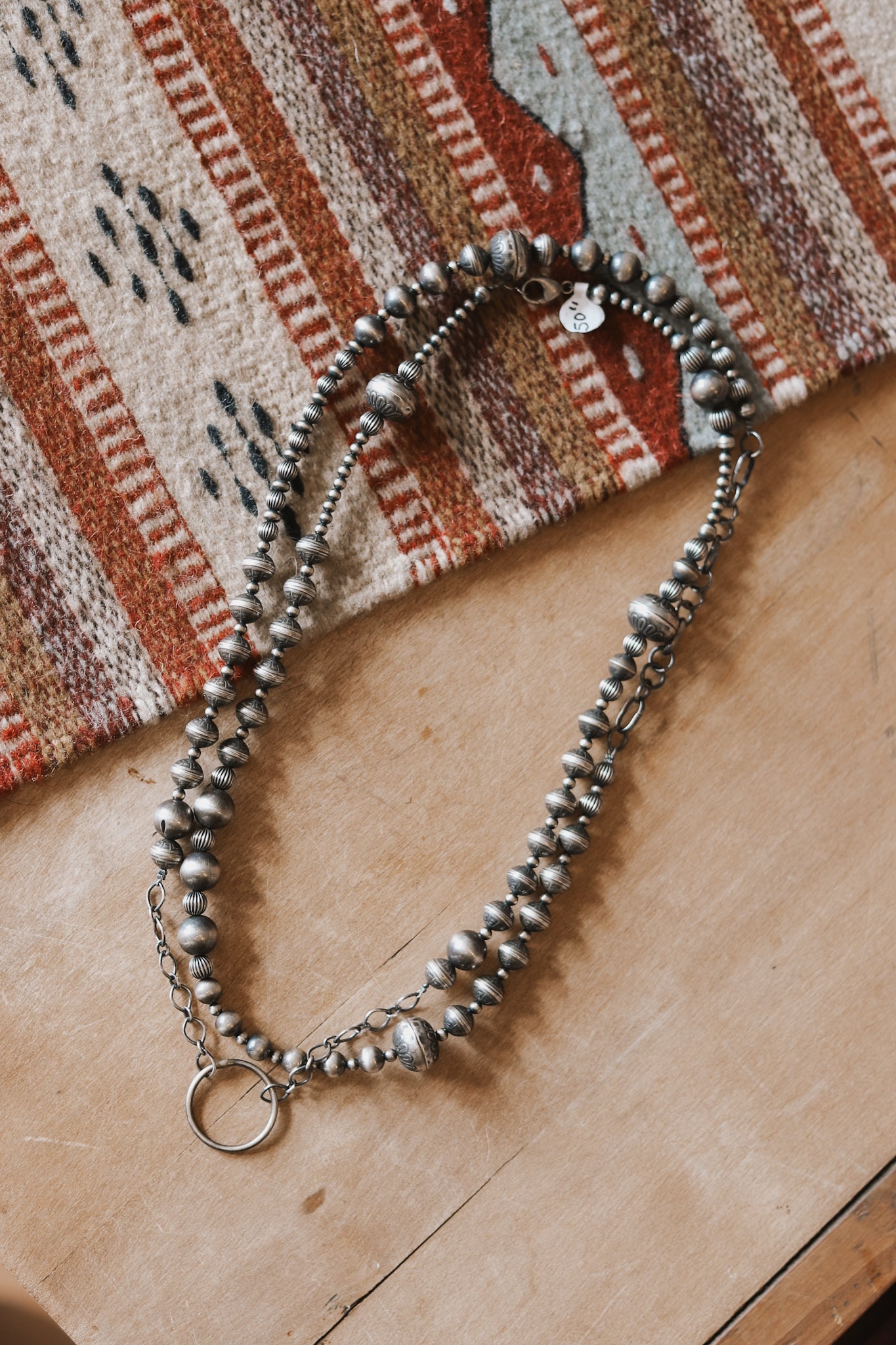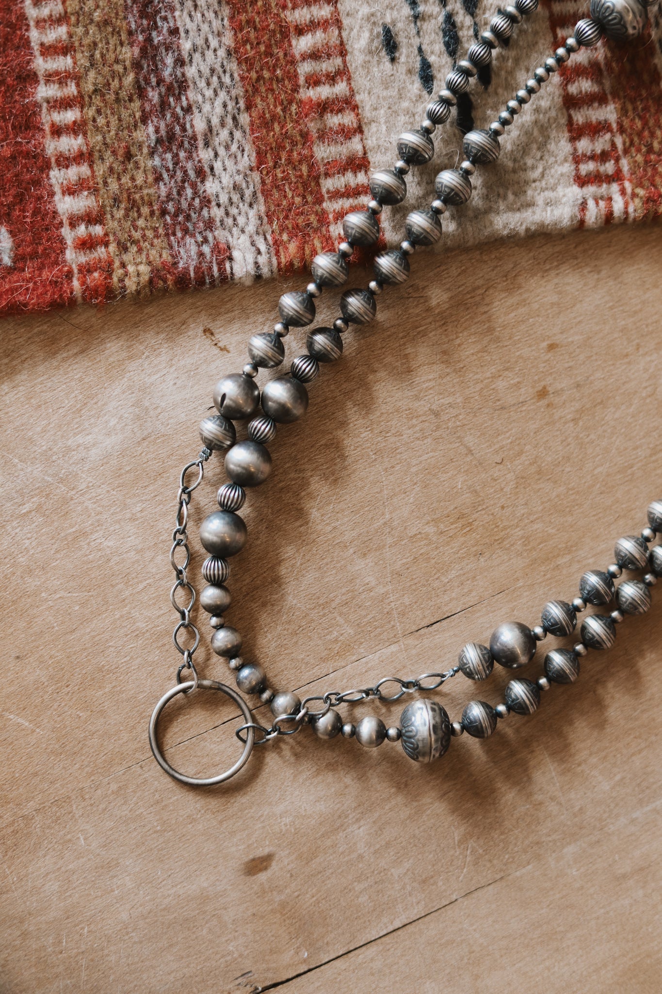 A traditional navajo pearls necklace. Gorgeous pearl adornments on this one of a kind piece.