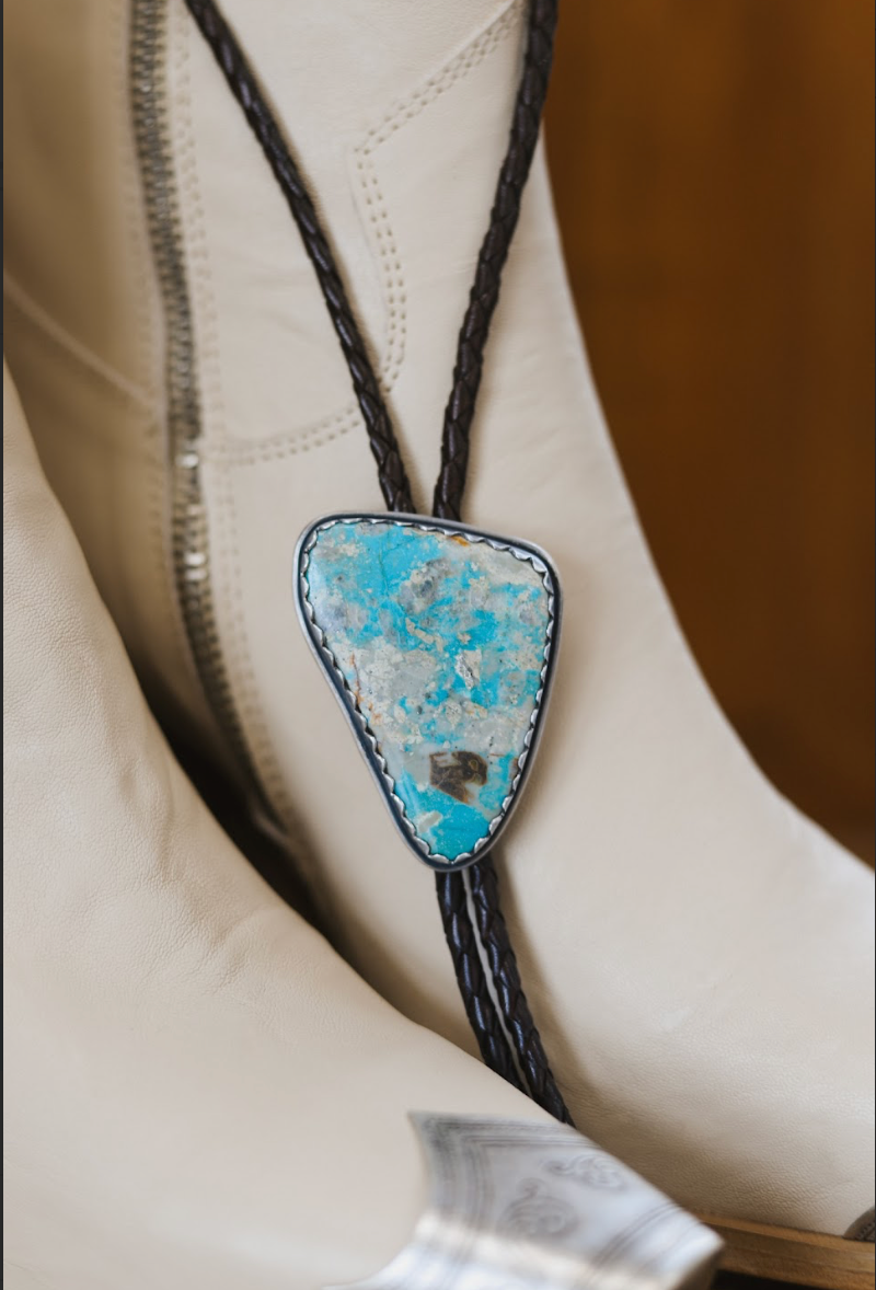 Introducing the Little Songs Bolo, with a striking bolo peyote bird design. This western-inspired accessory is sure to make a statement and elevate any outfit. Stand out from the crowd with this unique and eye-catching bolo.