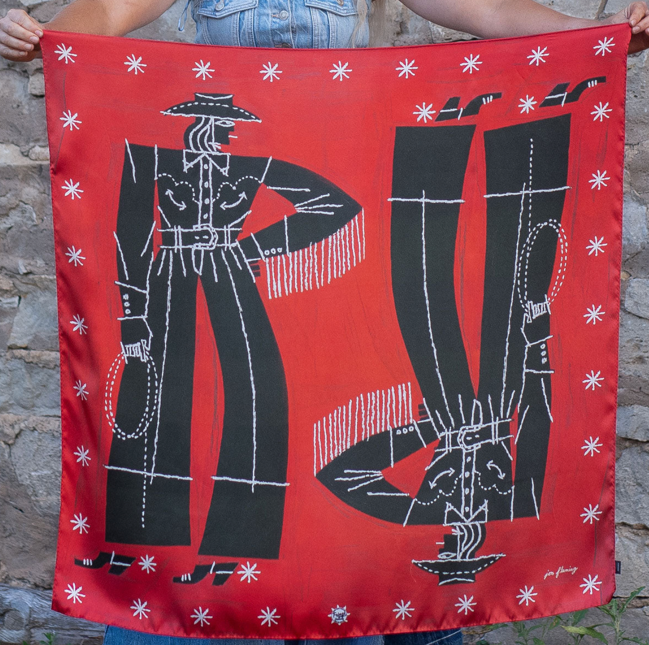 Jon's unique style and bold colors create one-of-a-kind pieces that are a must have for your scarf collection. Shown here is the scarf rendition of his artwork, Two Cowgirls, in this year's Fringe Artist Collection. Don't miss out on these limited collector silk scarves, sure to be passed down as a family heirloom