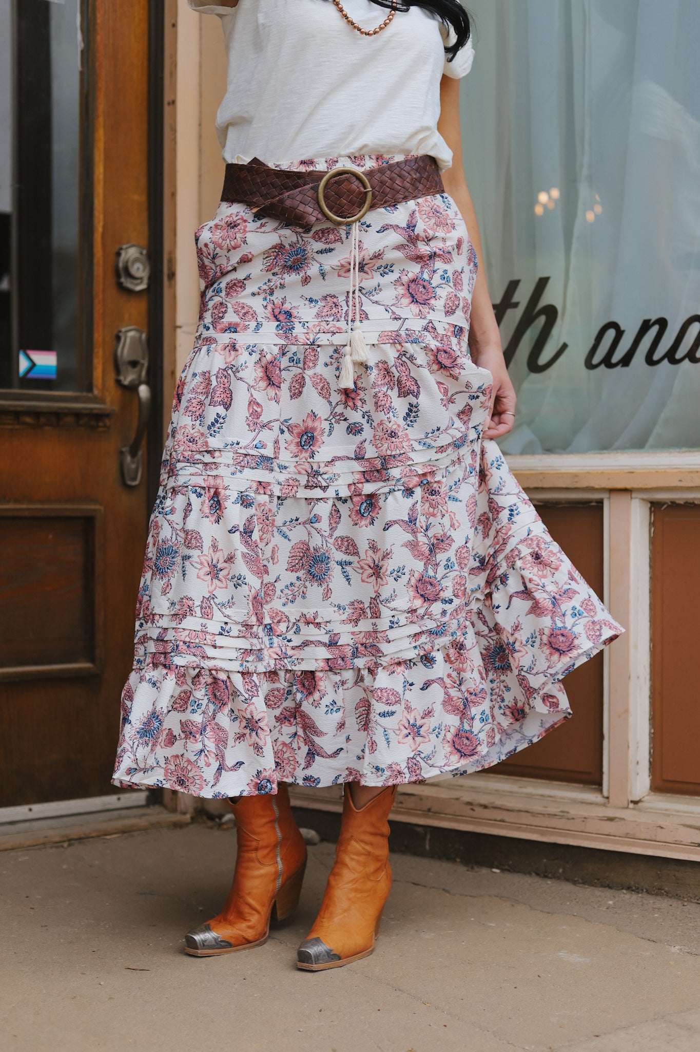 Get ready to twirl in the western-inspired Louisa Floral Skirt. With a gorgeous floral pattern and comfortable fit, this skirt is perfect for any occasion. Made with high-quality materials, enjoy the benefits of style and comfort all in one. Add a touch of femininity to your wardrobe with this must-have piece.