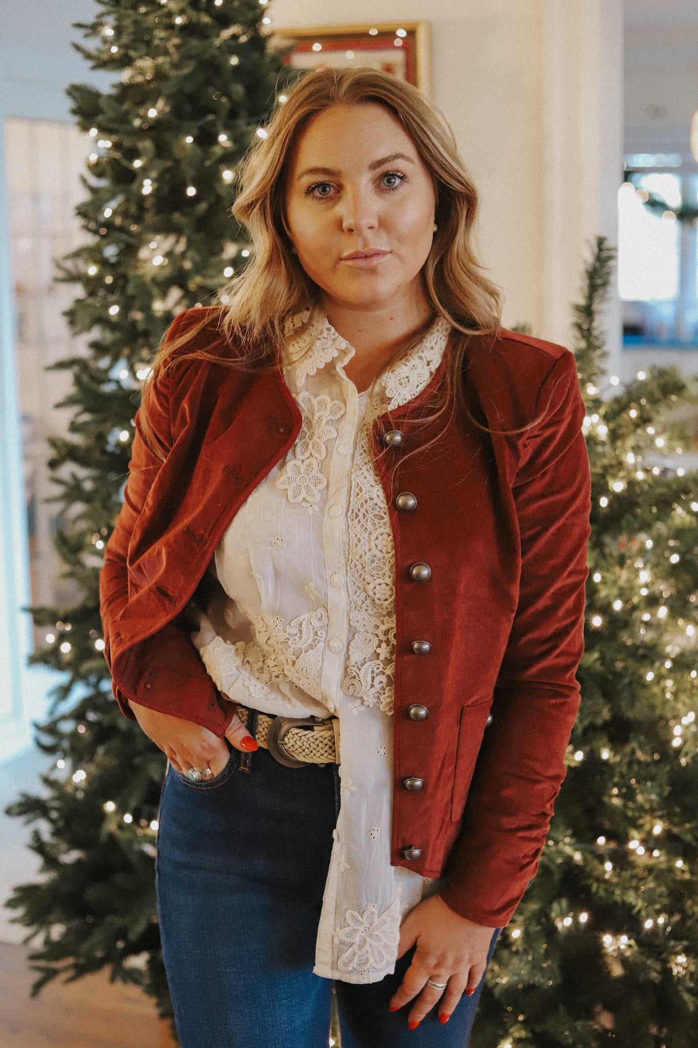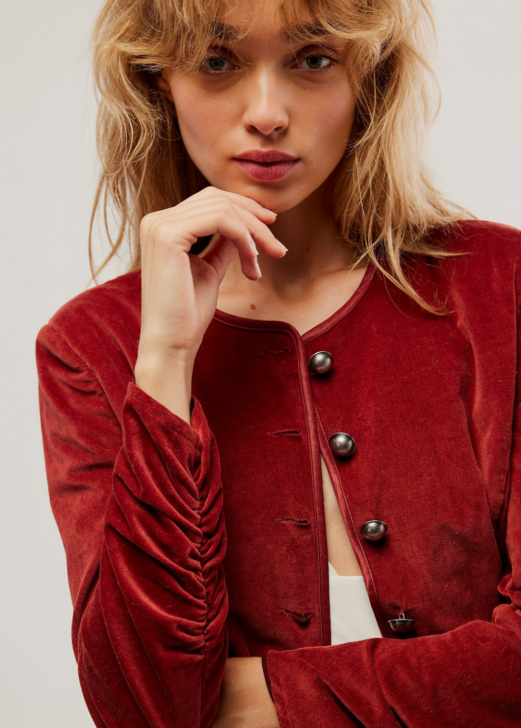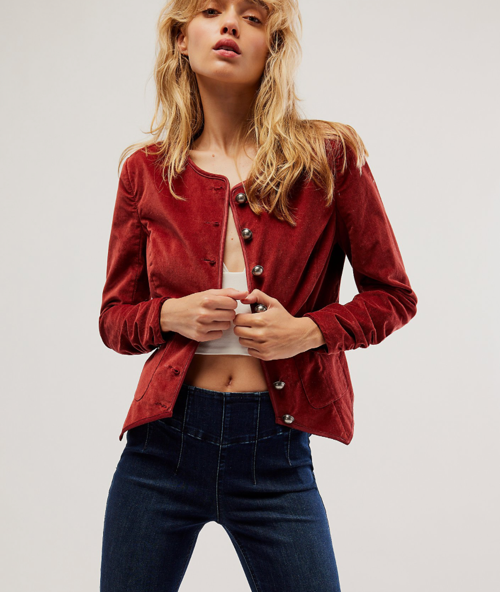 Taking a forever classic up a notch, this so cool jacket is featured in a staple, structured design and luxe velvet fabrication with defined front buttons for an added special touch. Designed to add a touch of texture to absolutely any look, this goes-with-anything jacket is sure to be a staple in your classics collection from season to season.