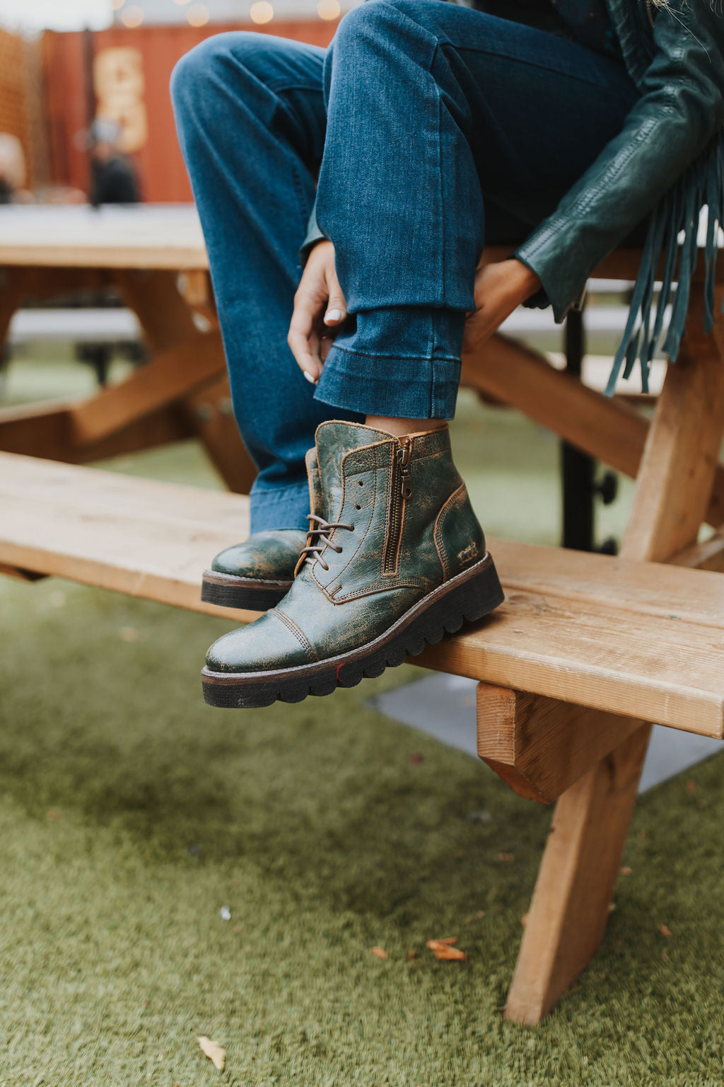 - Combat-style ankle boot with 6-eye lace up