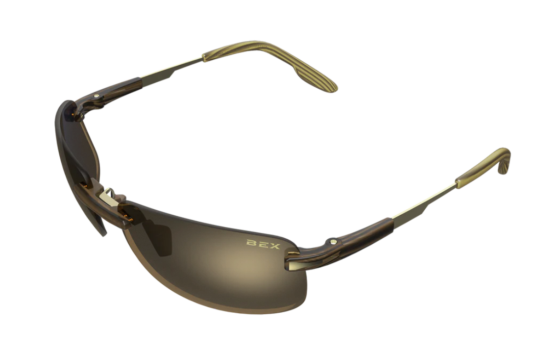 - Tortoise/Gold (S36TGB) - Frameless glossy tortoise striped thermoplastic frame with a matte gold titanium composite metal accent.