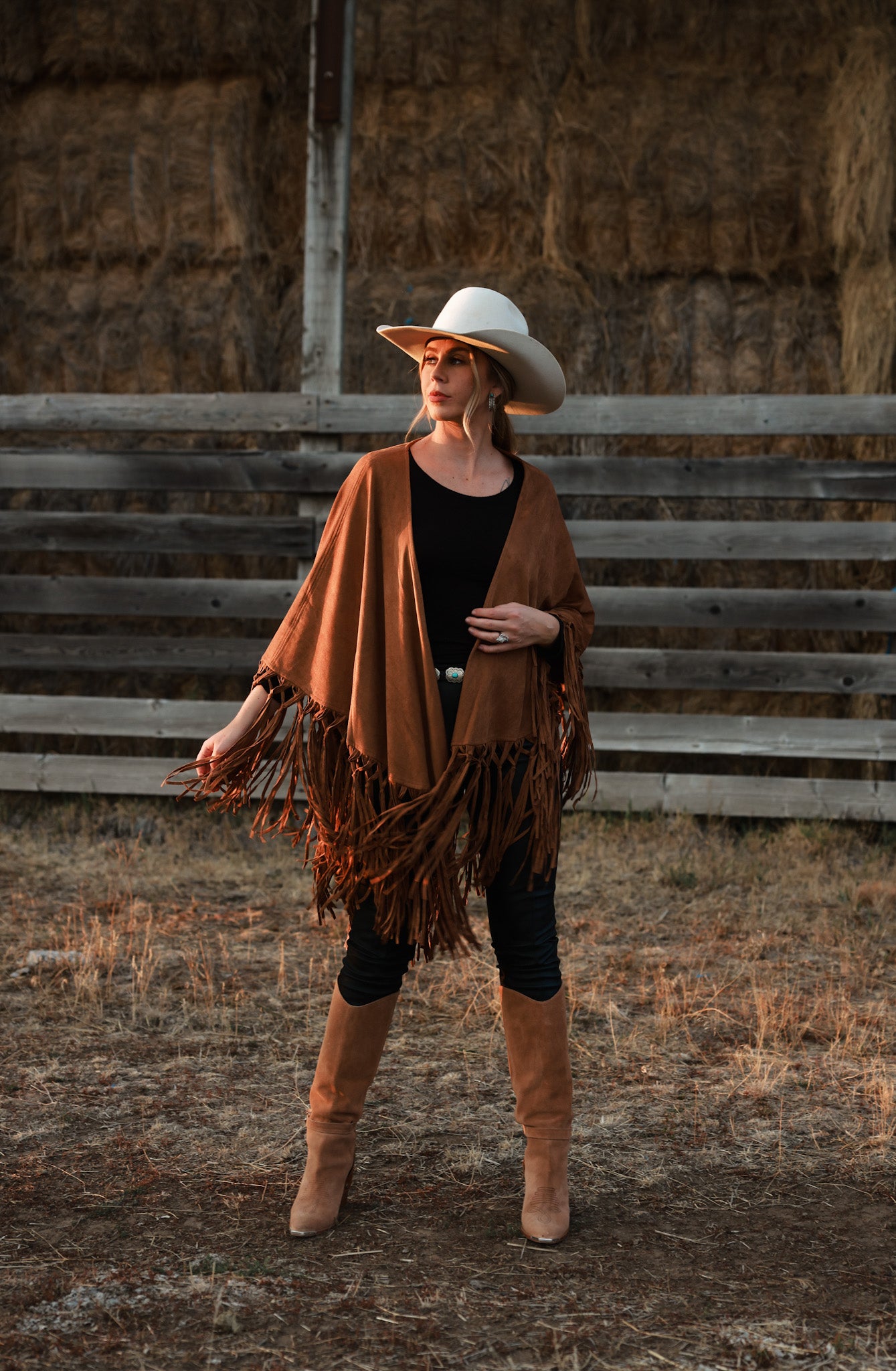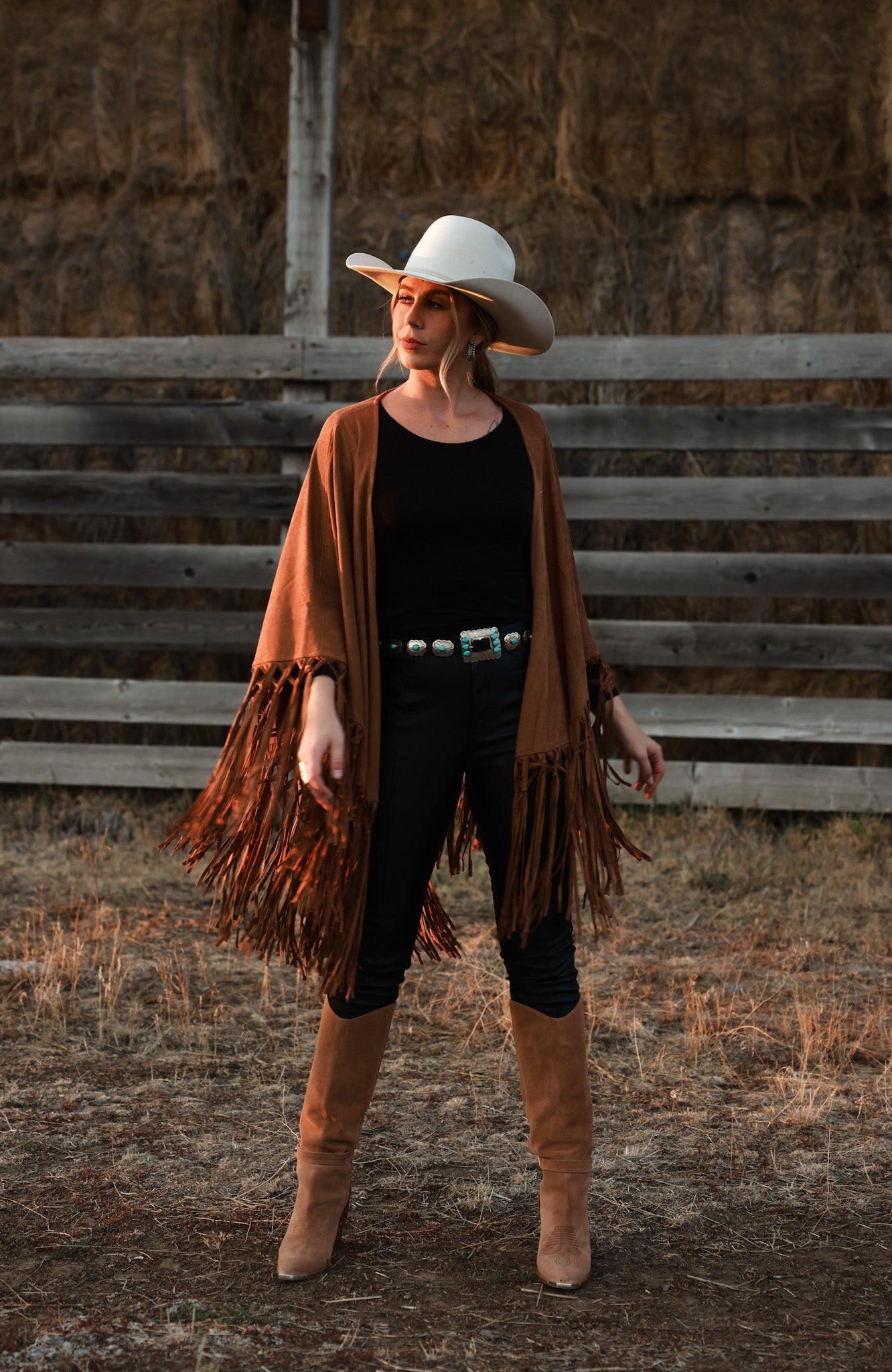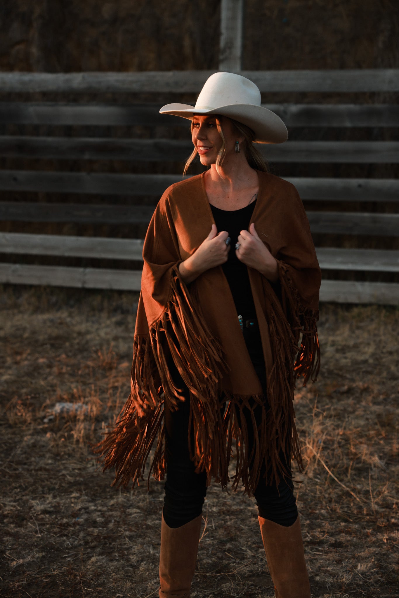 The ultimate of western-inspired shawls. The Sierra shawl feels like luxury when you put it on. Featuring a fully fringe hem and a super soft faux suede fabrication. This shawl is as classy as they get!