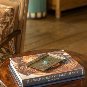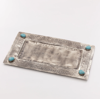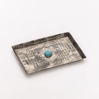 Featuring a genuine turquoise stone centrepiece, this tray is a stunning display of Southwestern style. Use it as a catch-all for keys and mail in your entryway or as a centrepiece on your dining table. The possibilities are endless.