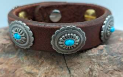 Upgrade your western style with the Cassidy Leather Bracelet. Made from high-quality leather, this bracelet adds a rugged element to any outfit. Its unique design features a sturdy clasp for a secure fit and durability. Enhance your fashion game and embrace the western vibe with this modern and stylish accessory.