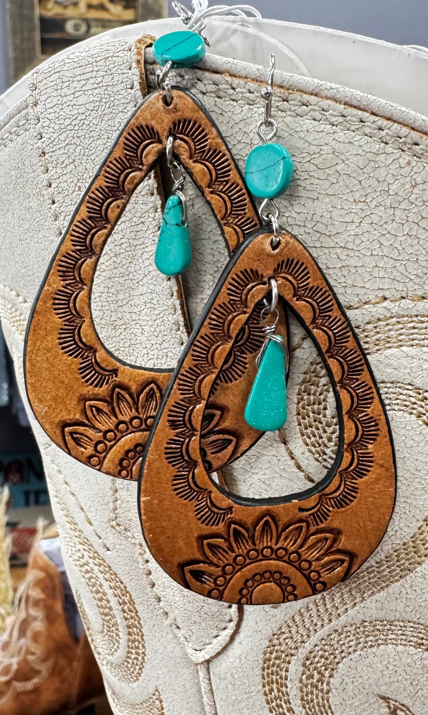 Add a touch of western charm to your outfit with our Blossom Rising Leather Earrings. Hand tooled with precision, these earrings are a unique and stylish addition to your jewelry collection. Elevate your look with the intricate details of these beautiful leather earrings.