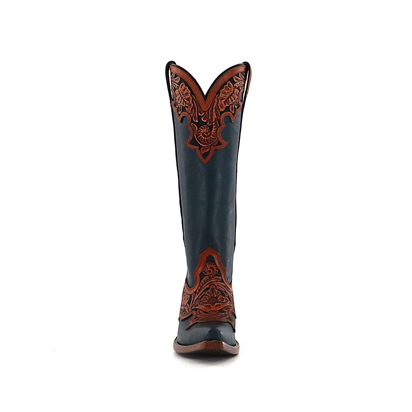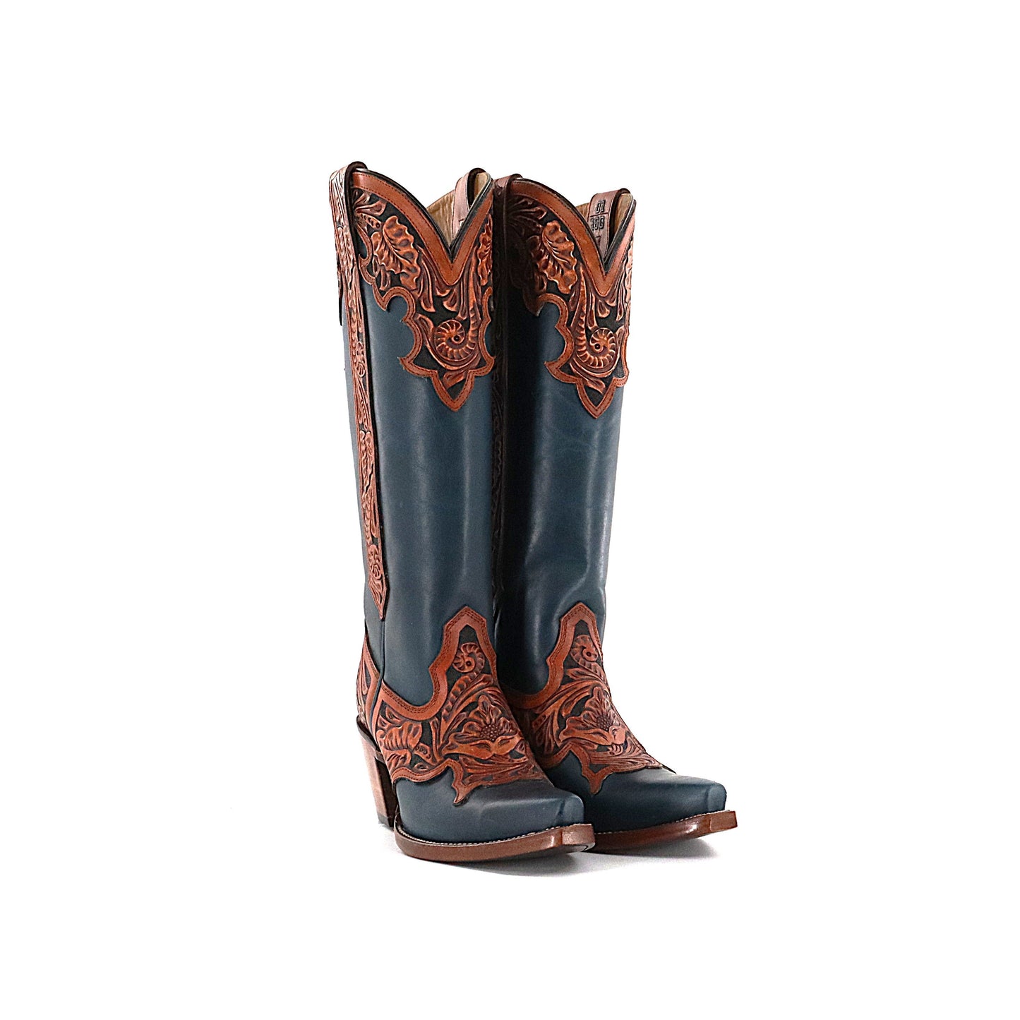• Hand-tooled leather on collar, pull tabs, vamp, and heel—artistry in every detail
