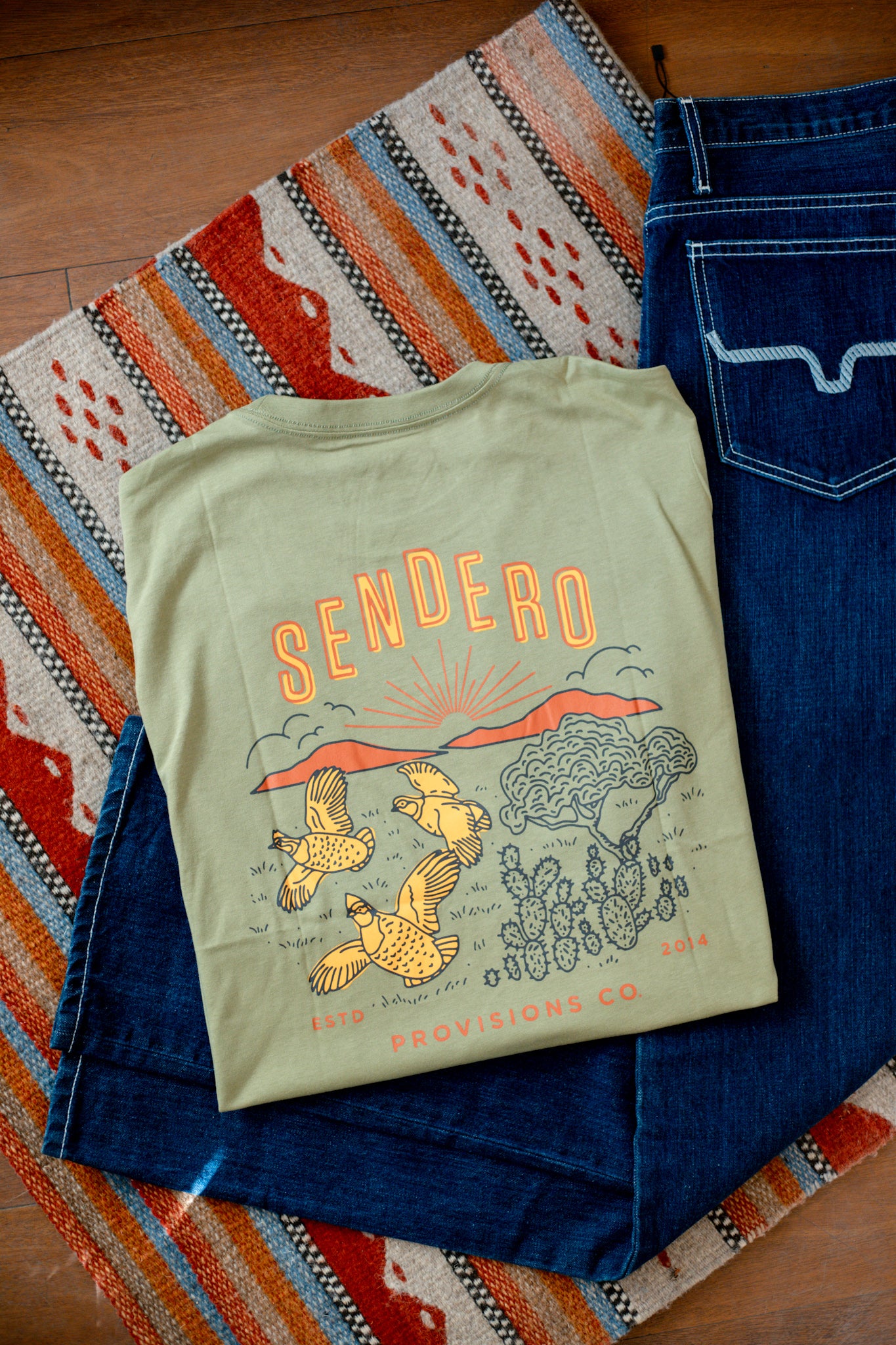 The Covey T-Shirt by Sendero. Represent the spirit of the west with this comfortable and stylish t-shirt. Made with high quality materials, this shirt is perfect for any adventure or everyday wear. Show off your love for the outdoors with the Covey T-Shirt.