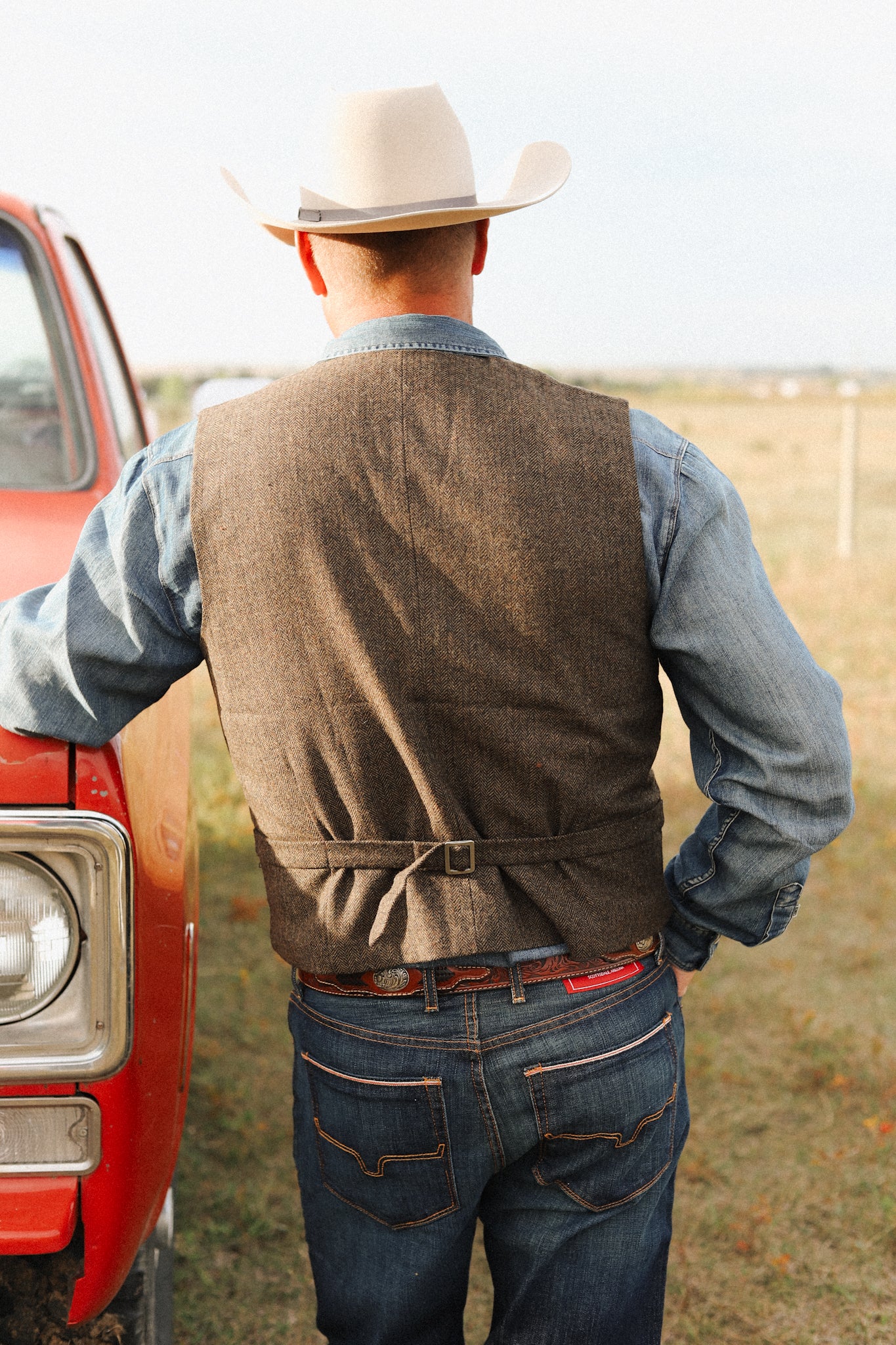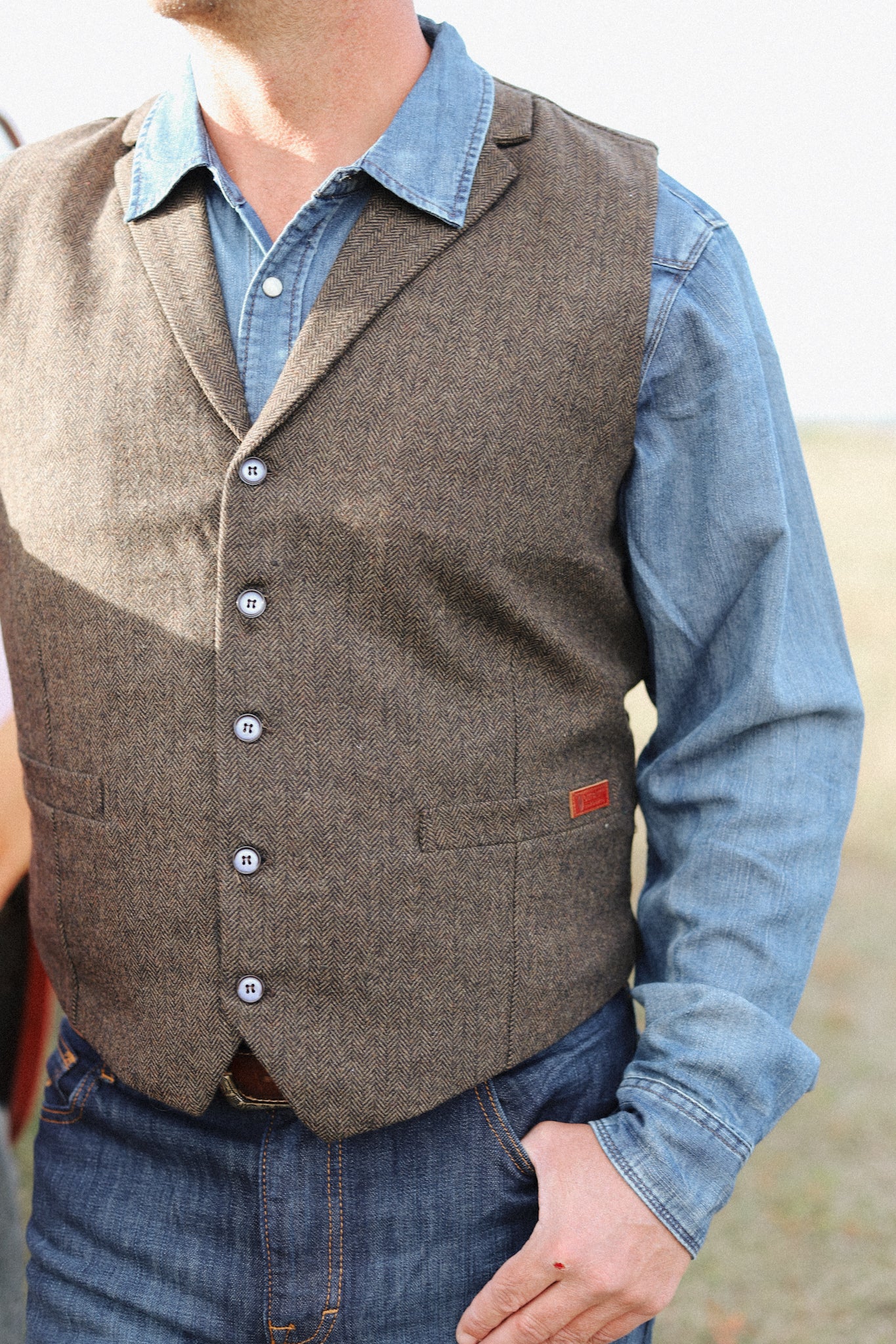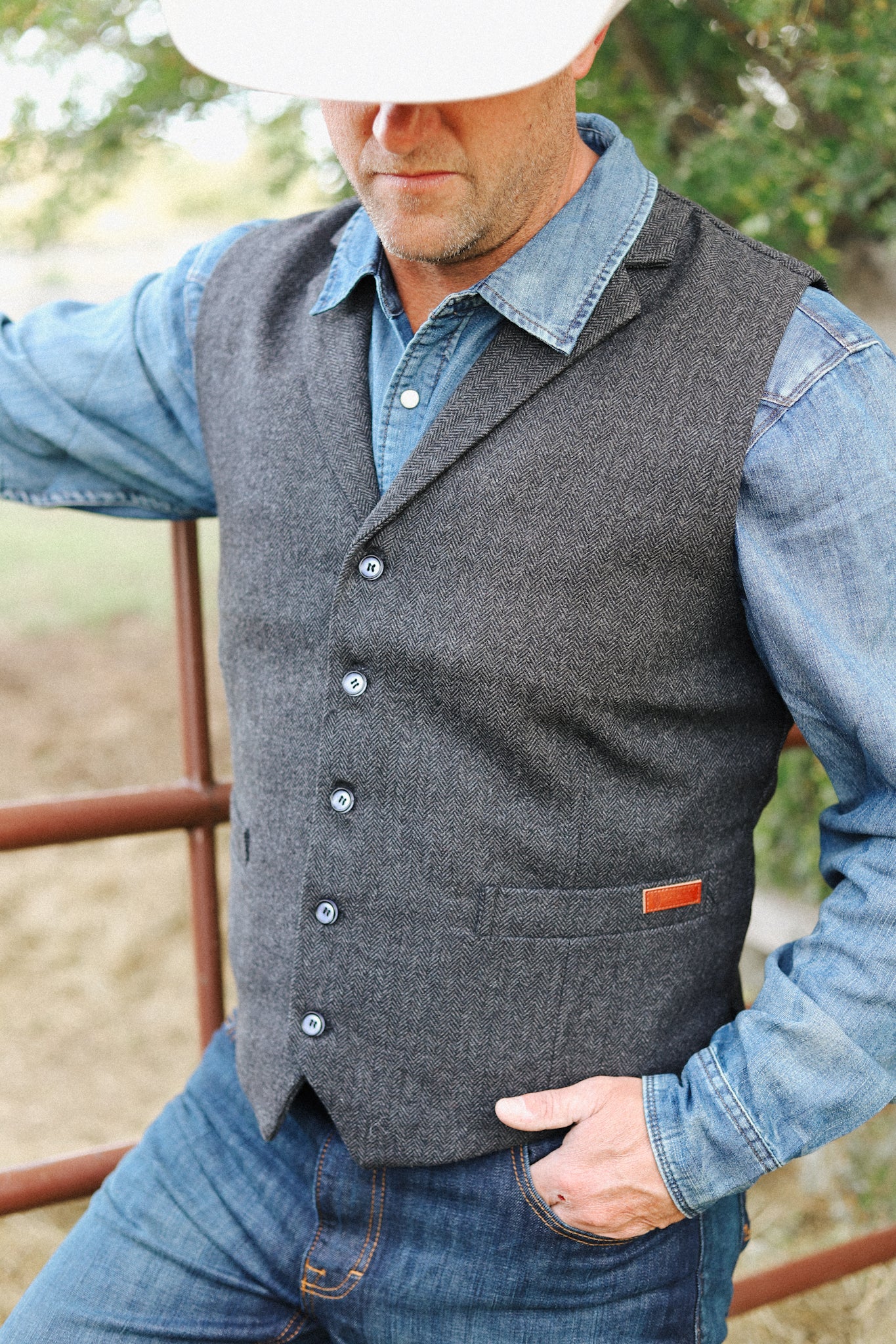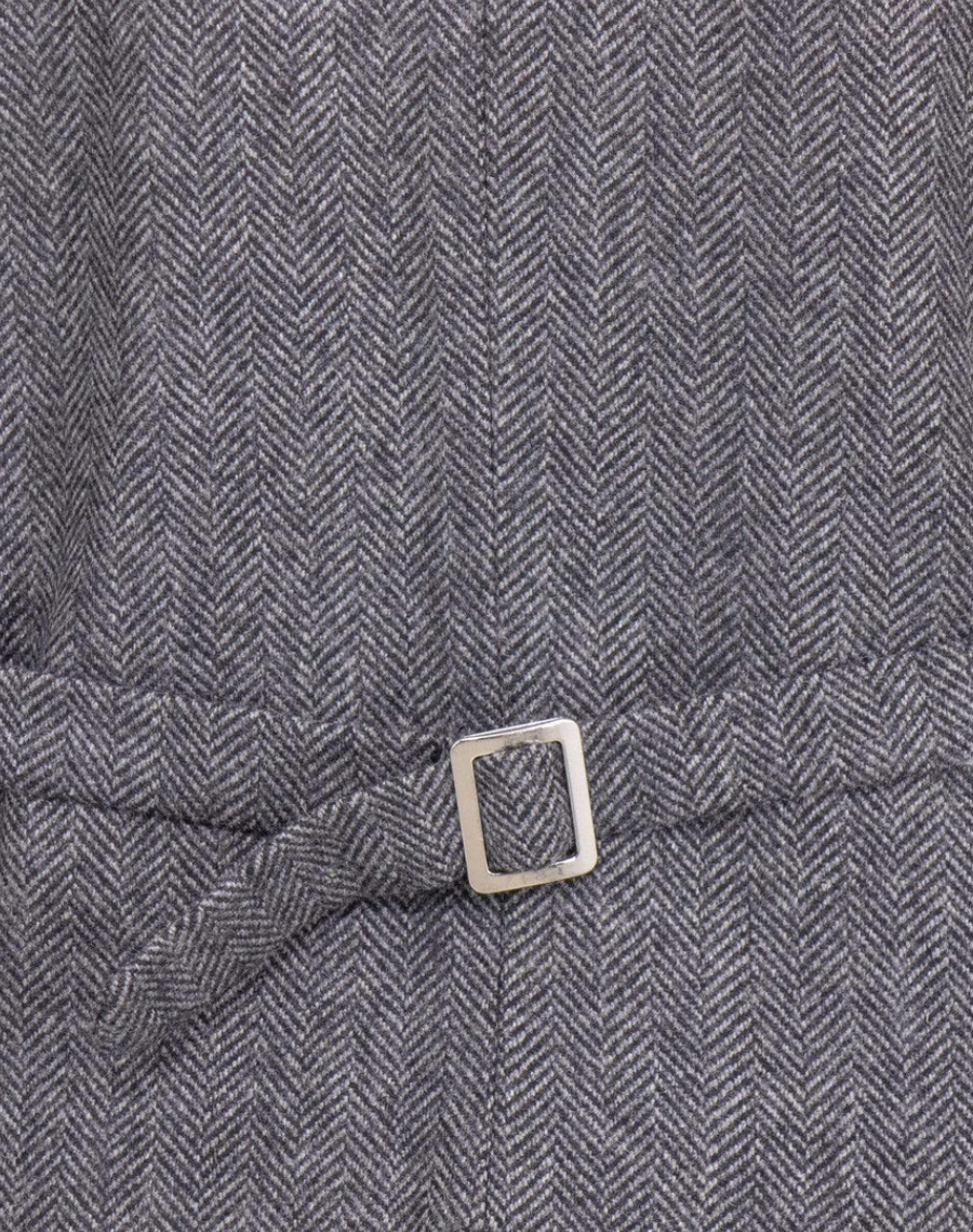 The Jessie is the staple vest every gent needs in their closet. Made in a variety of colors the Jessie Vest is the perfect combination of formal and casual with its welt hip pockets, button front closure, herringbone pattern, and adjustable back belt.