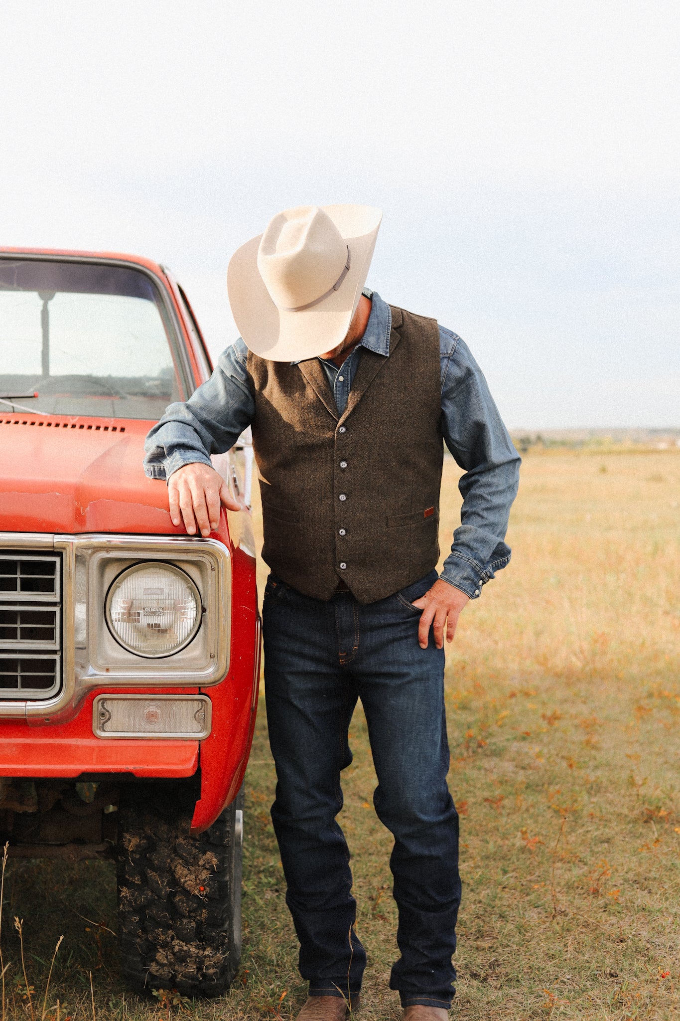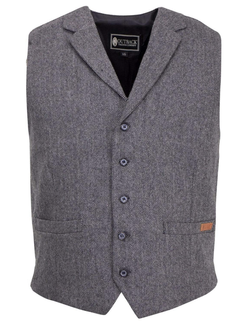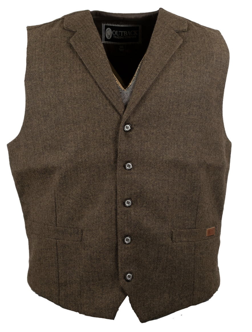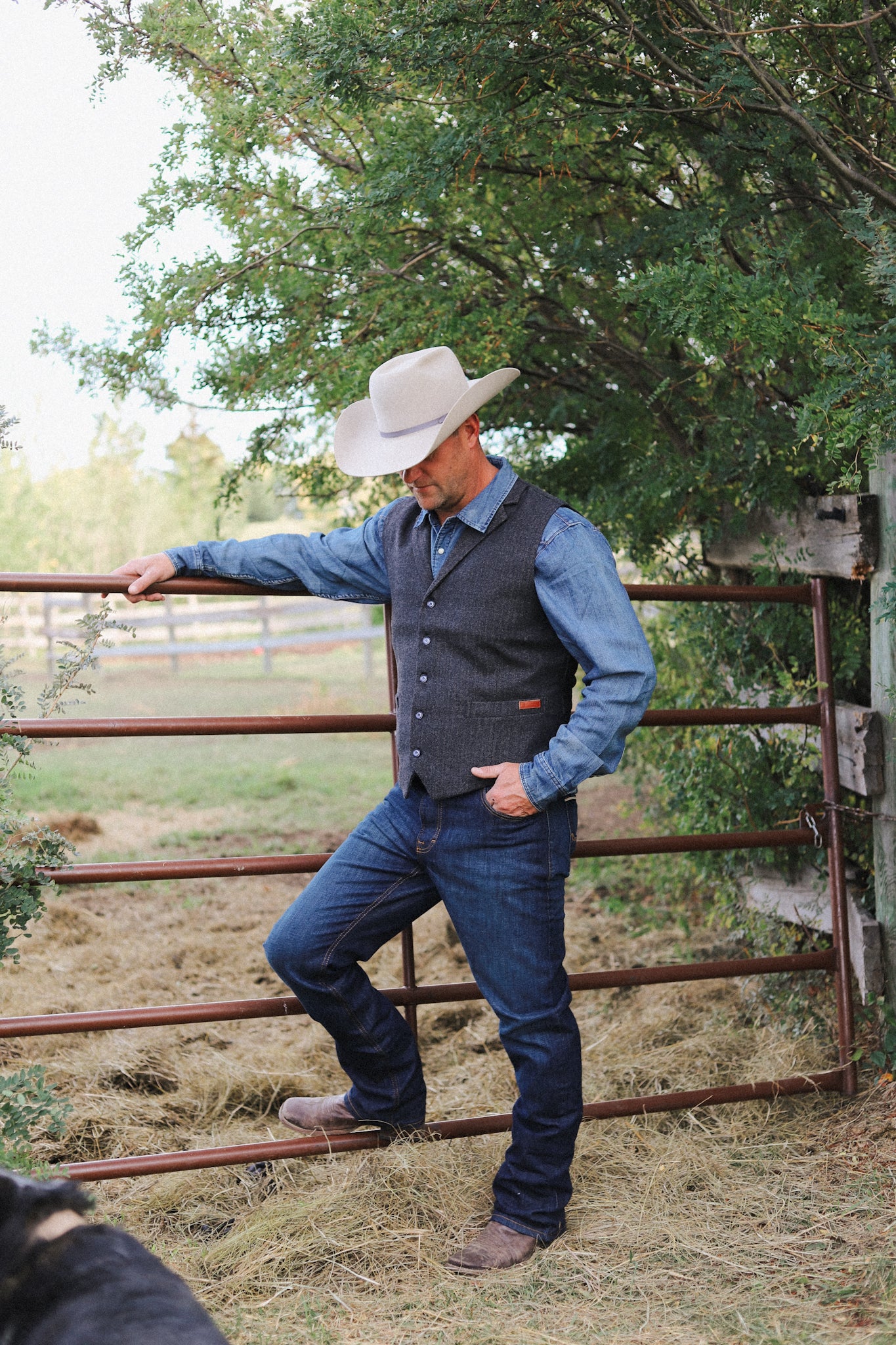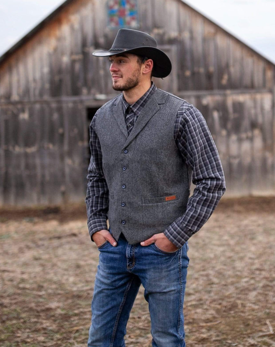 The Jessie is the staple vest every gent needs in their closet. Made in a variety of colors the Jessie Vest is the perfect combination of formal and casual with its welt hip pockets, button front closure, herringbone pattern, and adjustable back belt.