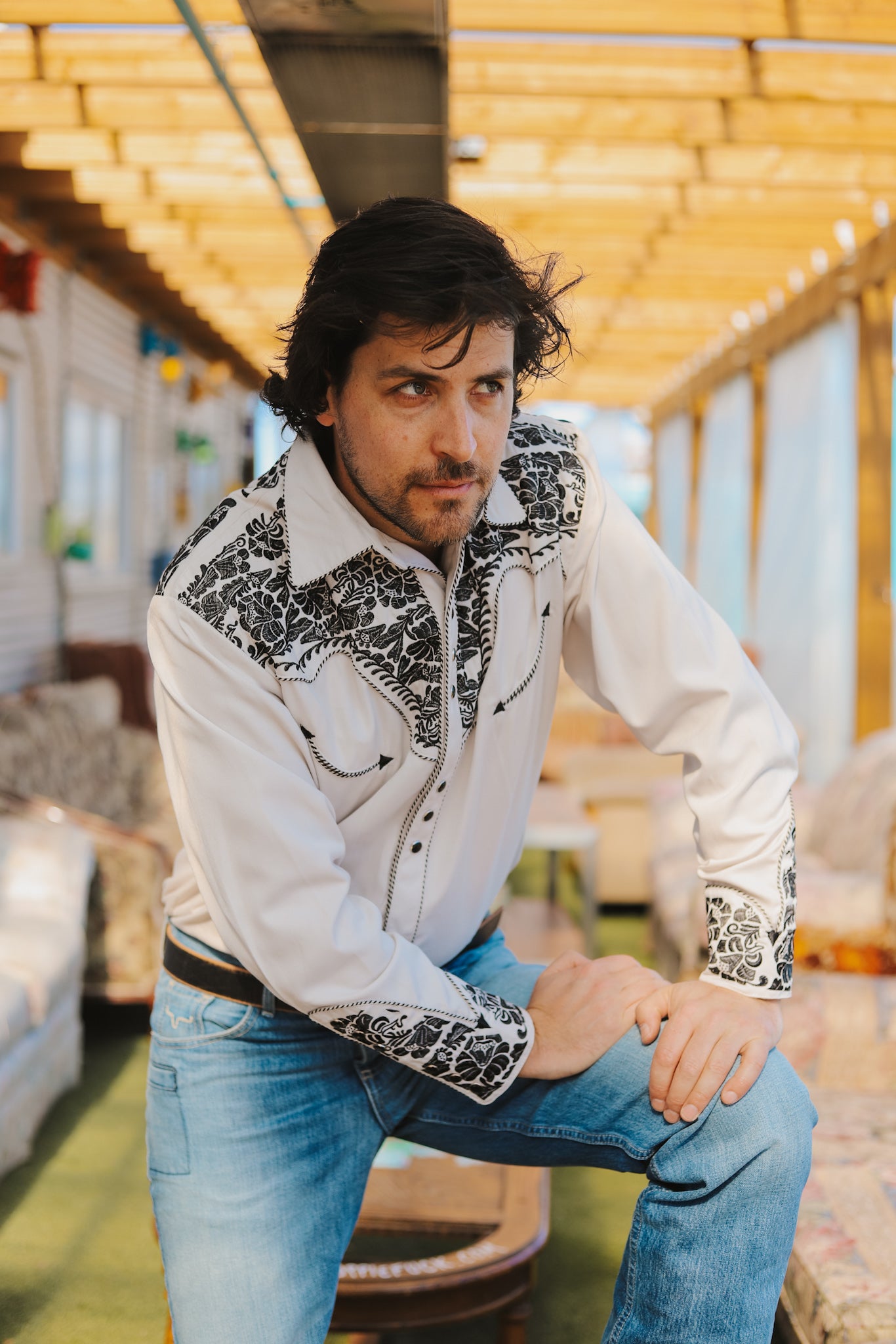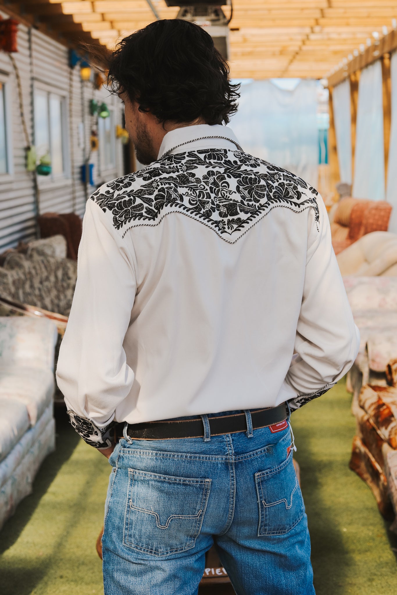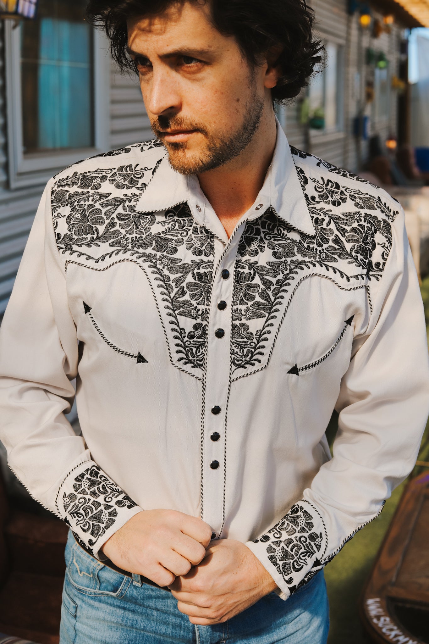- Embroidery on front, back, and sleeves