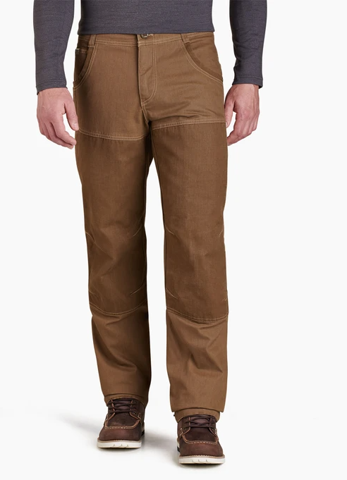Introducing the Kuhl Above the Law Pant in dark khaki - perfect for those who refuse to be constrained. With a full seat and thigh and a wide lower leg, these pants offer freedom of movement. Plus, the 3D pocket with zip and side zip vents make them functional and reinforced fabric ensures durability.