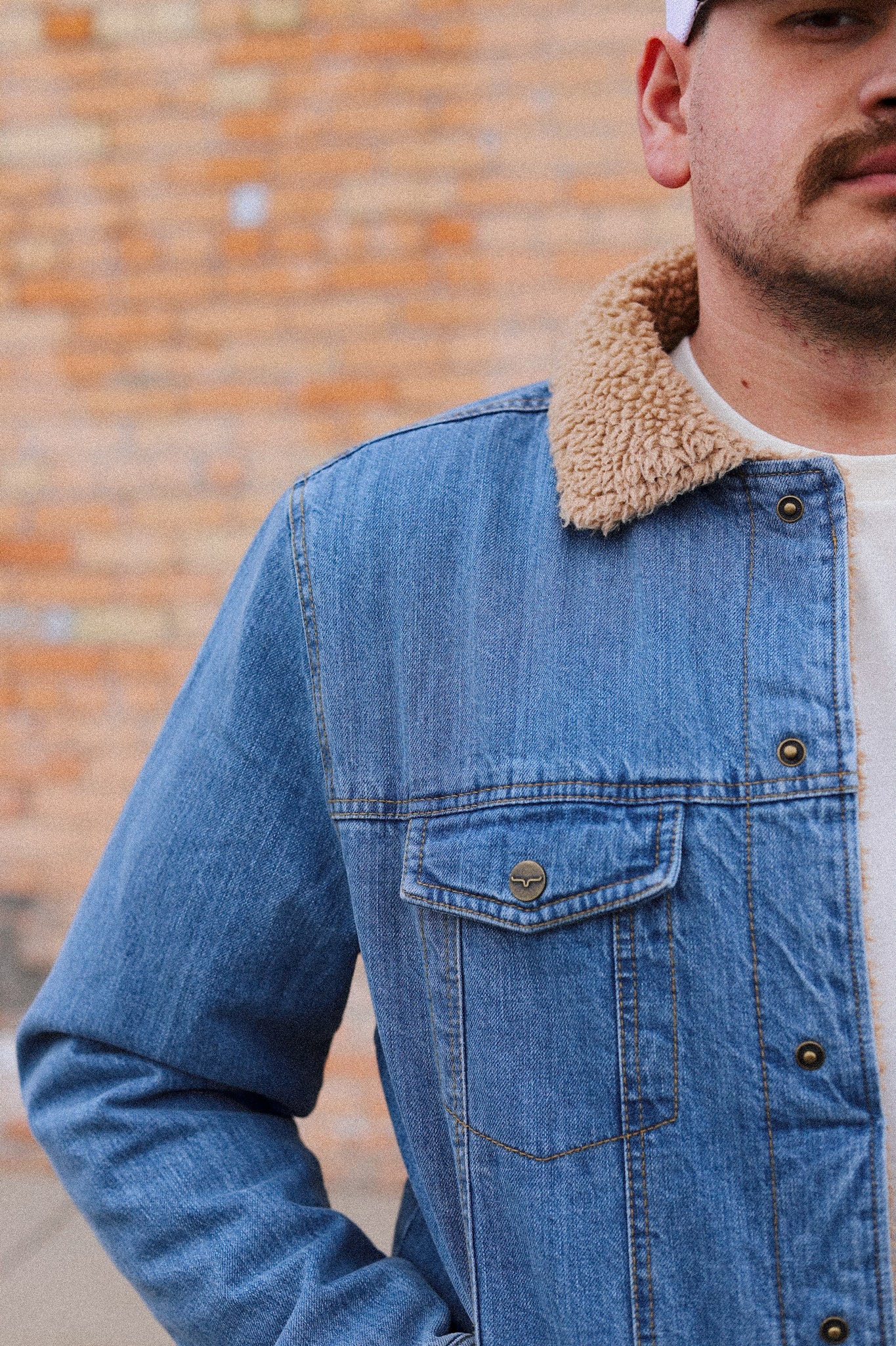 Regular price $179.95 CADA classic denim piece, the Laramie Trucker features sherpa lining on the body and collar for extra warmth in the colder months. Complete with western accents including an arched back yoke and embroidered longhorn logo on back waistband.
