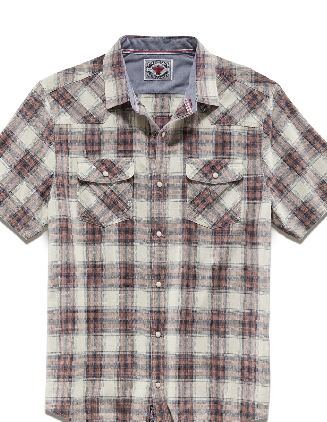 This vintage-inspired Western shirt is a go-to for casual and comfortable everyday wear. Designed with all the classic style cues and specially washed for supreme softness, this shirt fits and feels like a broken-in favorite from the first time you put it on. Contrast fabric inside collar stand, and back yoke. Dual front chest pockets; pearlized snap closures. Tailored athletic fit.