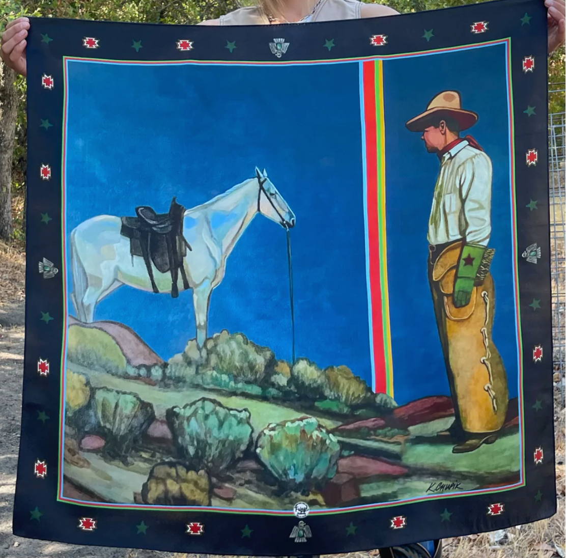 Designed by Texas artist, Kevin Chupik. There are so many rich, beautiful colors in this painting we can't wait to both wear it and frame it!