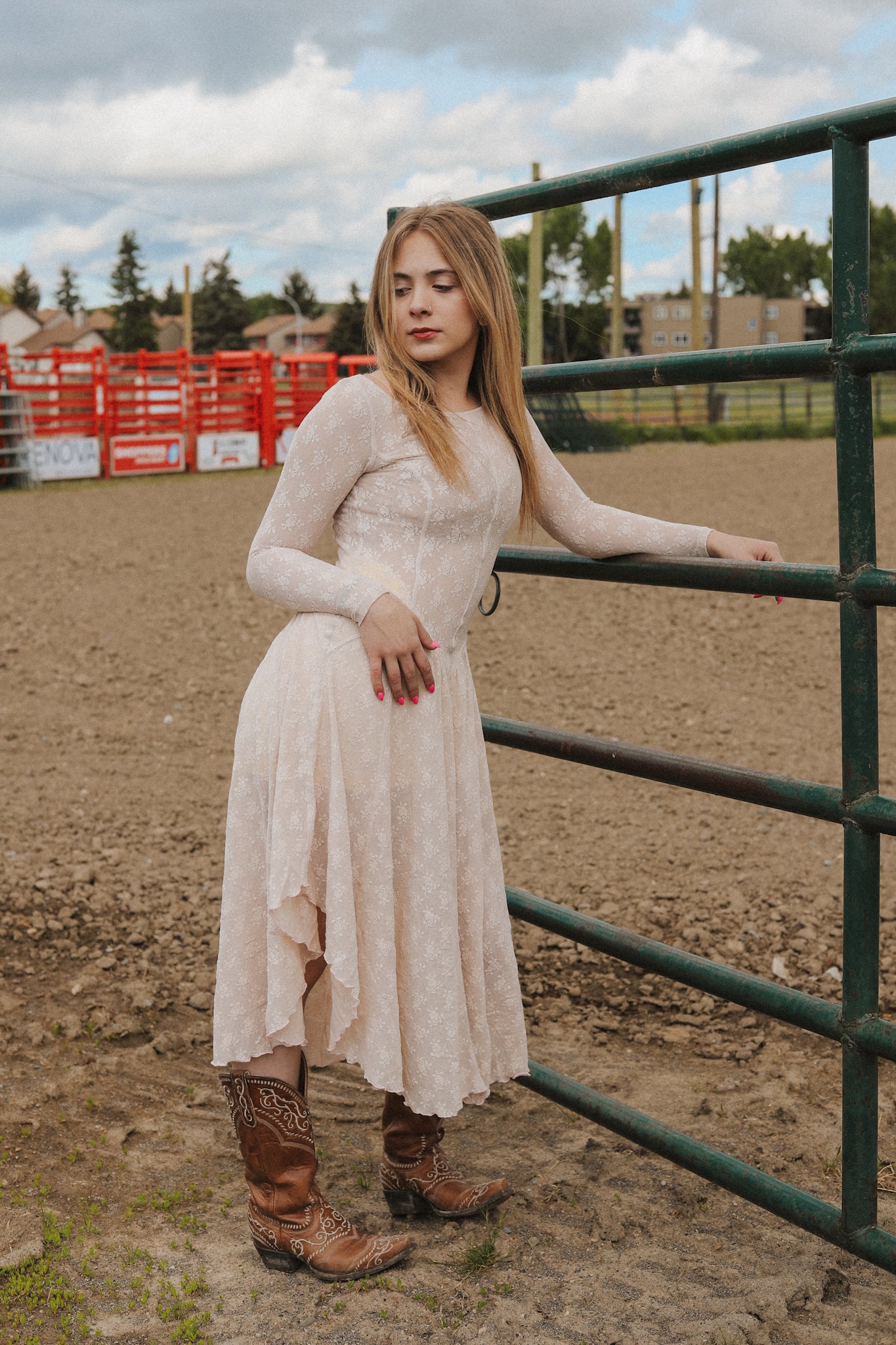 Fit: Slim at the bodice with billowy skirt design