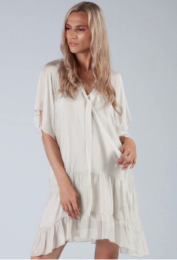 Regular price $179.95 CADAura Silk Dress is made with sensual silk and viscose. The silk bow necktie creates a flattering v-neck while the lower horizontal panels build luxurious layers for a loose fit. Keep the good vibes flowing and free-spirited with the element inspired by Aura Silk Dress.