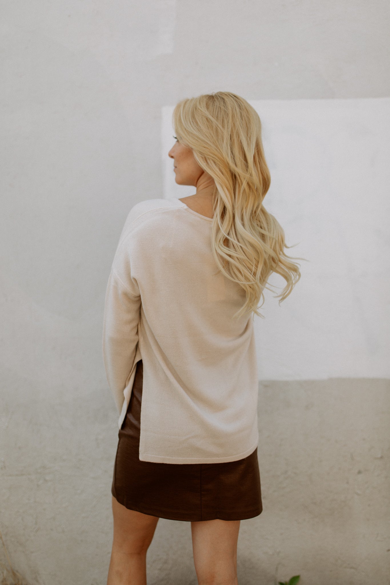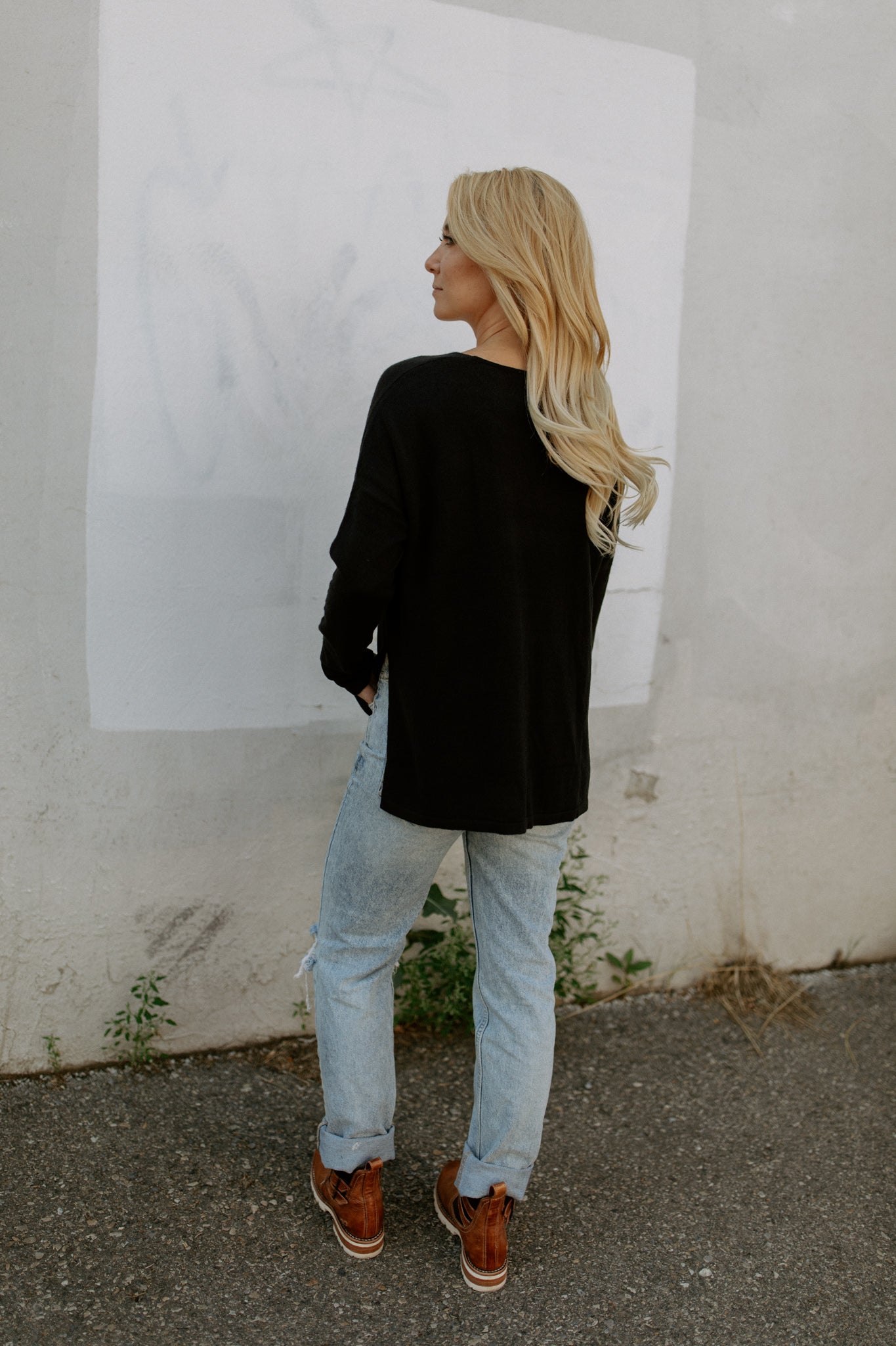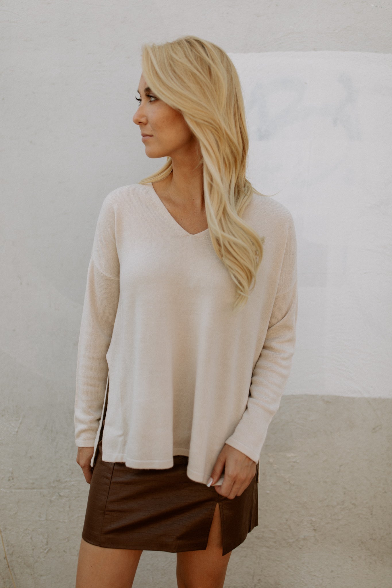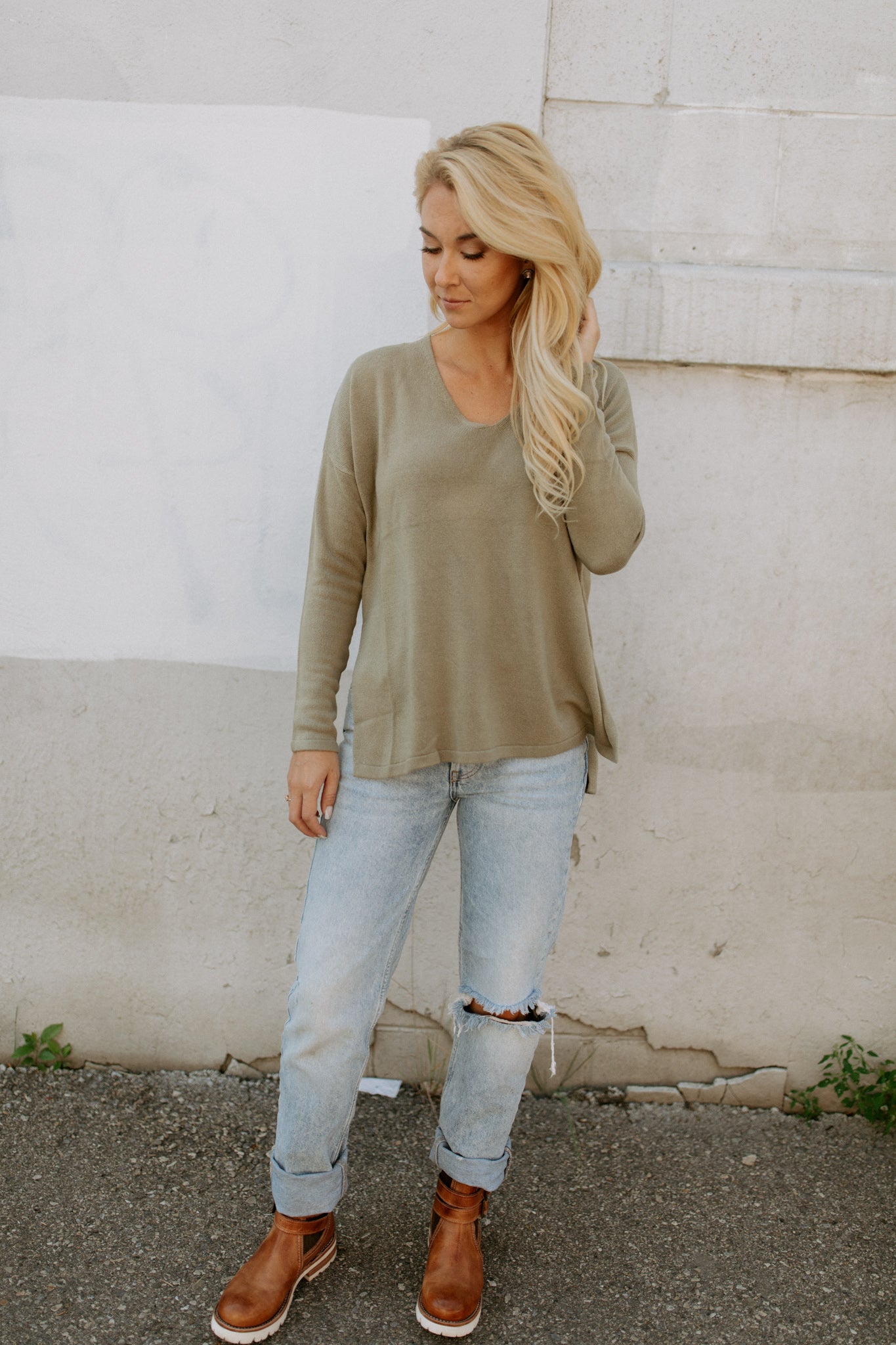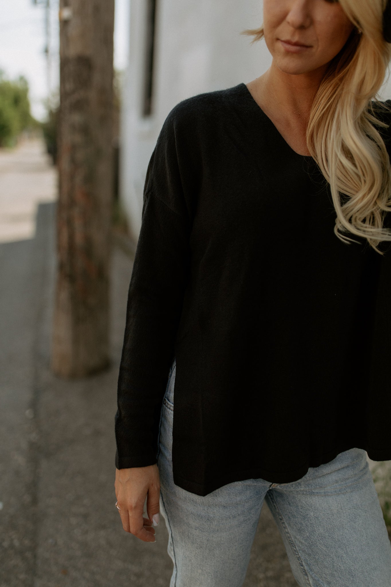 There are so many reasons to love this basic long sleeve! It's incredibly soft fabrication will keep you cozy, while the side slits and v-neckline will keep you stylish. Trust us when we say you'll be wearing this one all fall/winter long.