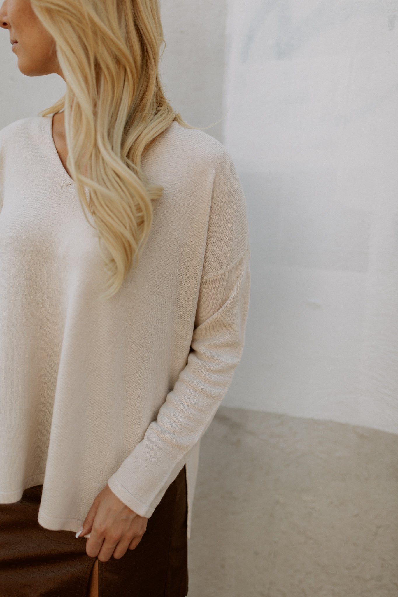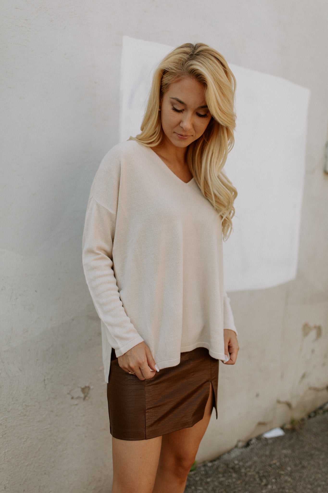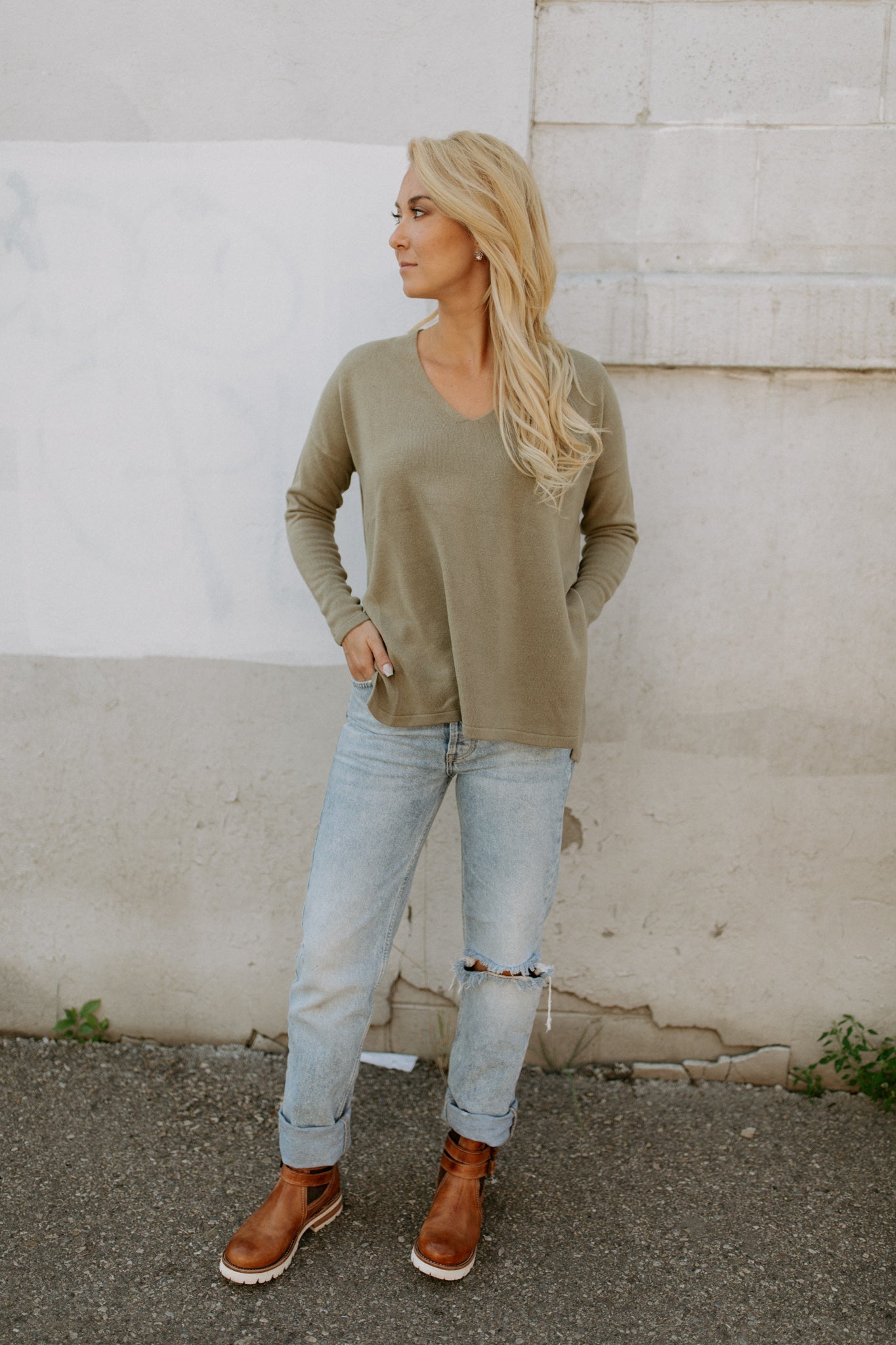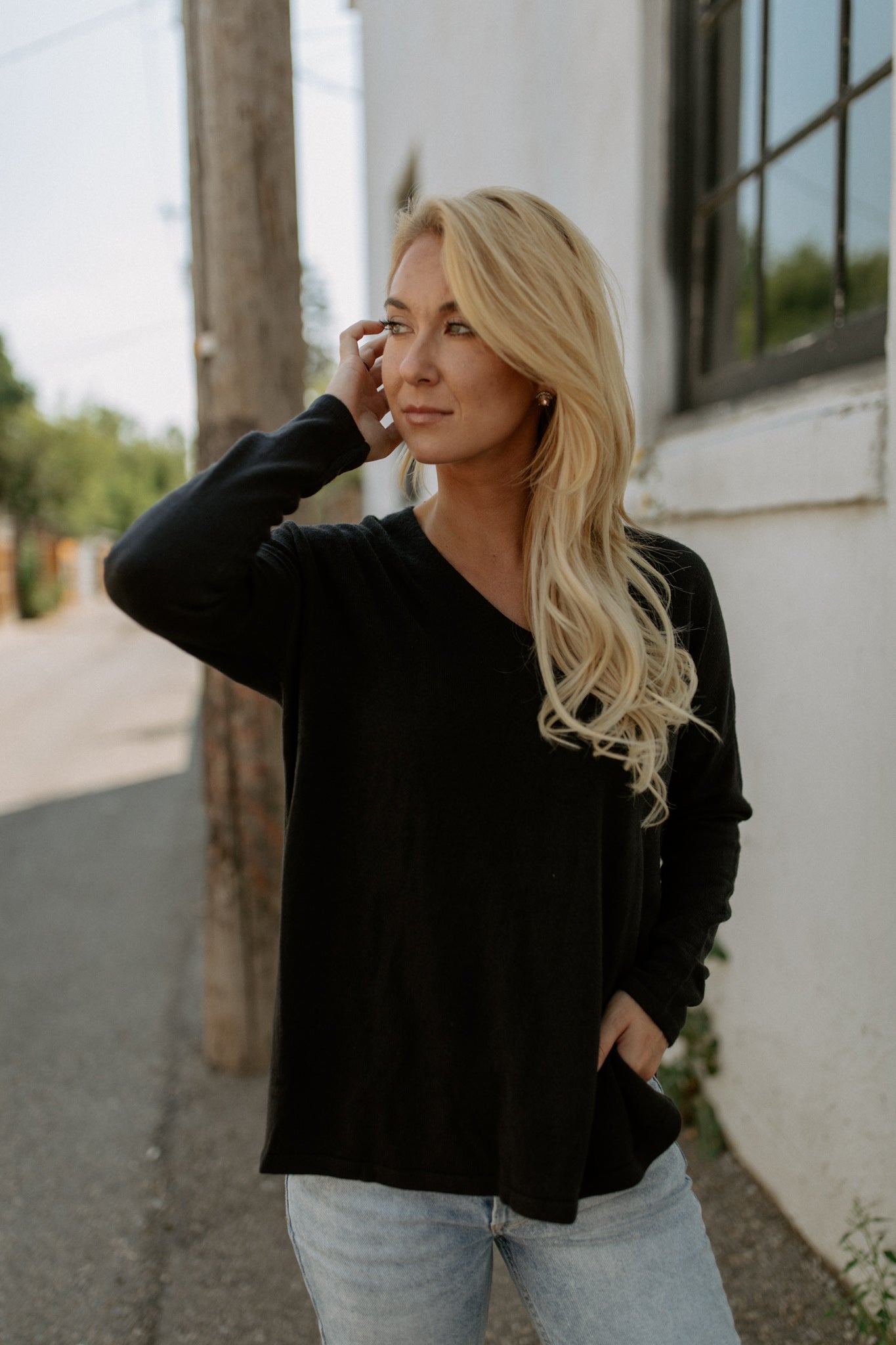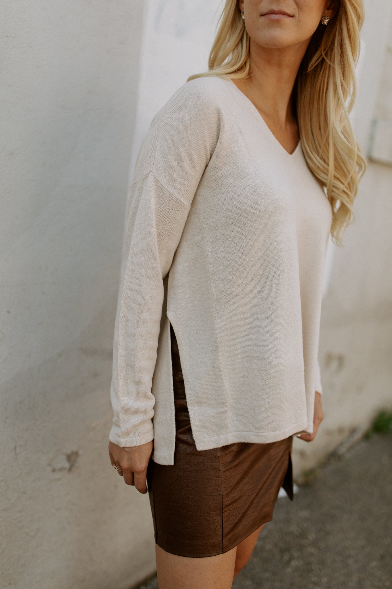 There are so many reasons to love this basic long sleeve! It's incredibly soft fabrication will keep you cozy, while the side slits and v-neckline will keep you stylish. Trust us when we say you'll be wearing this one all fall/winter long.