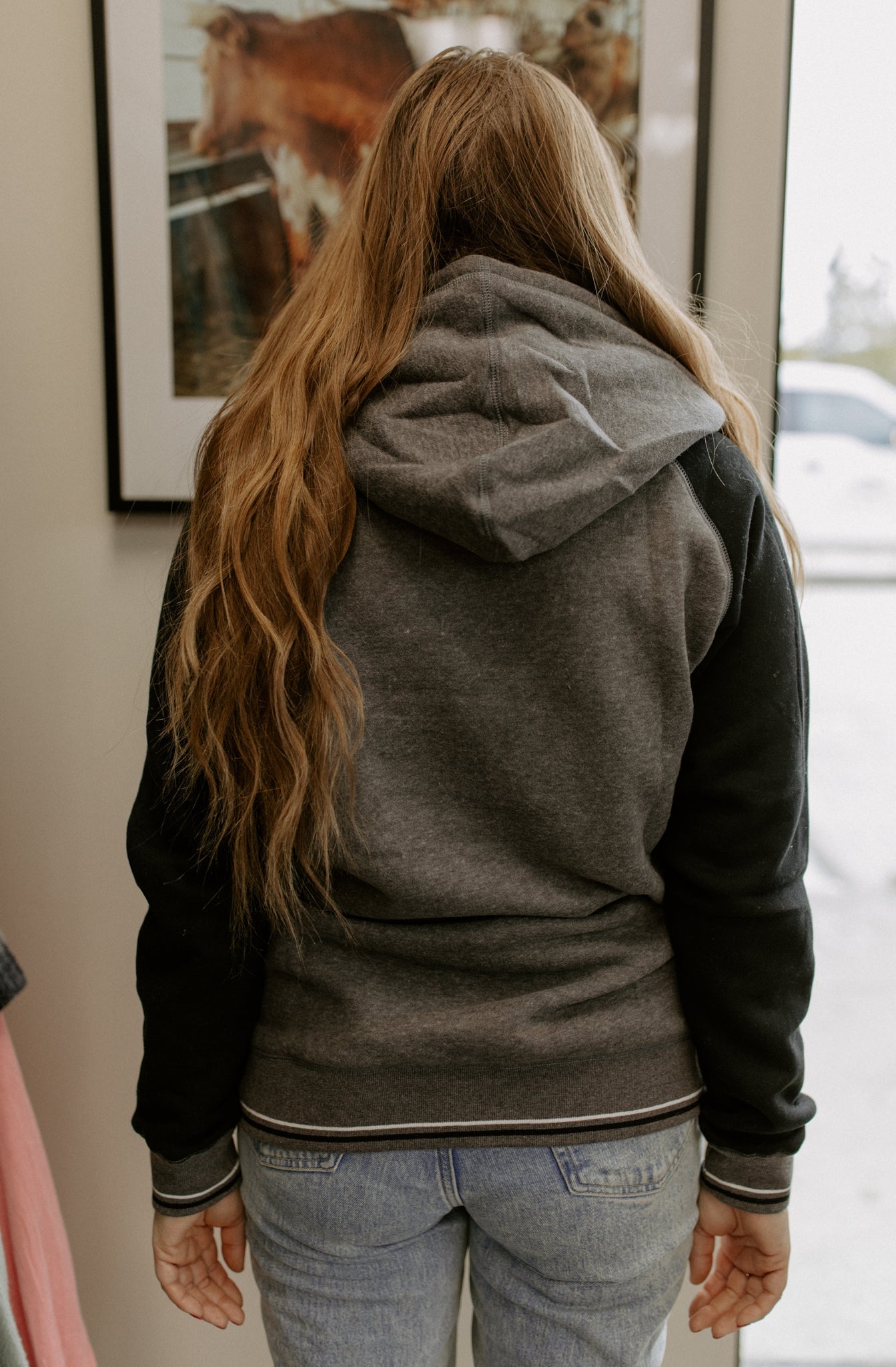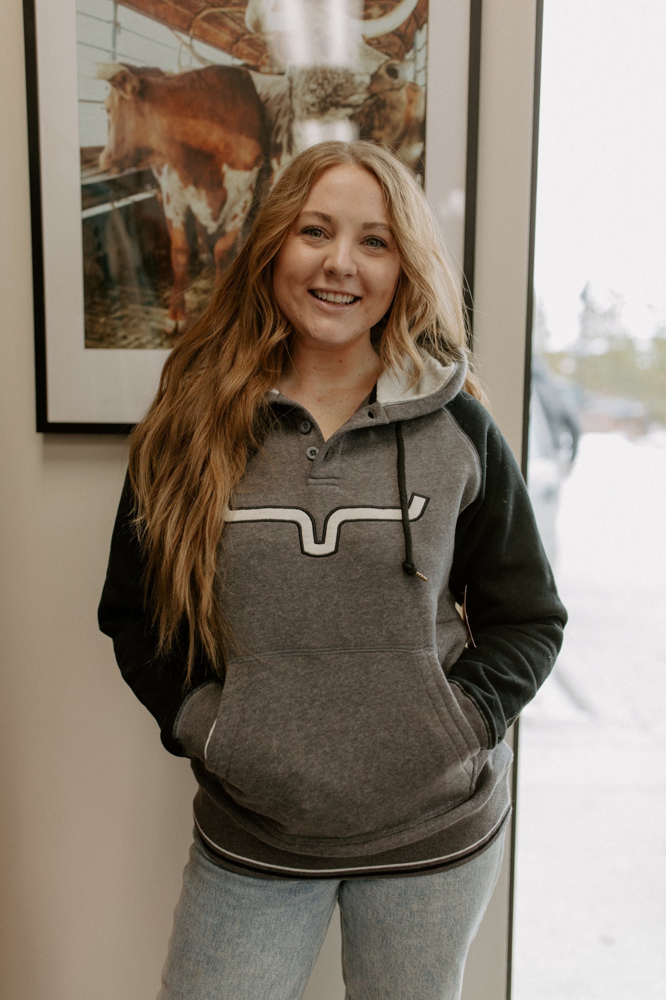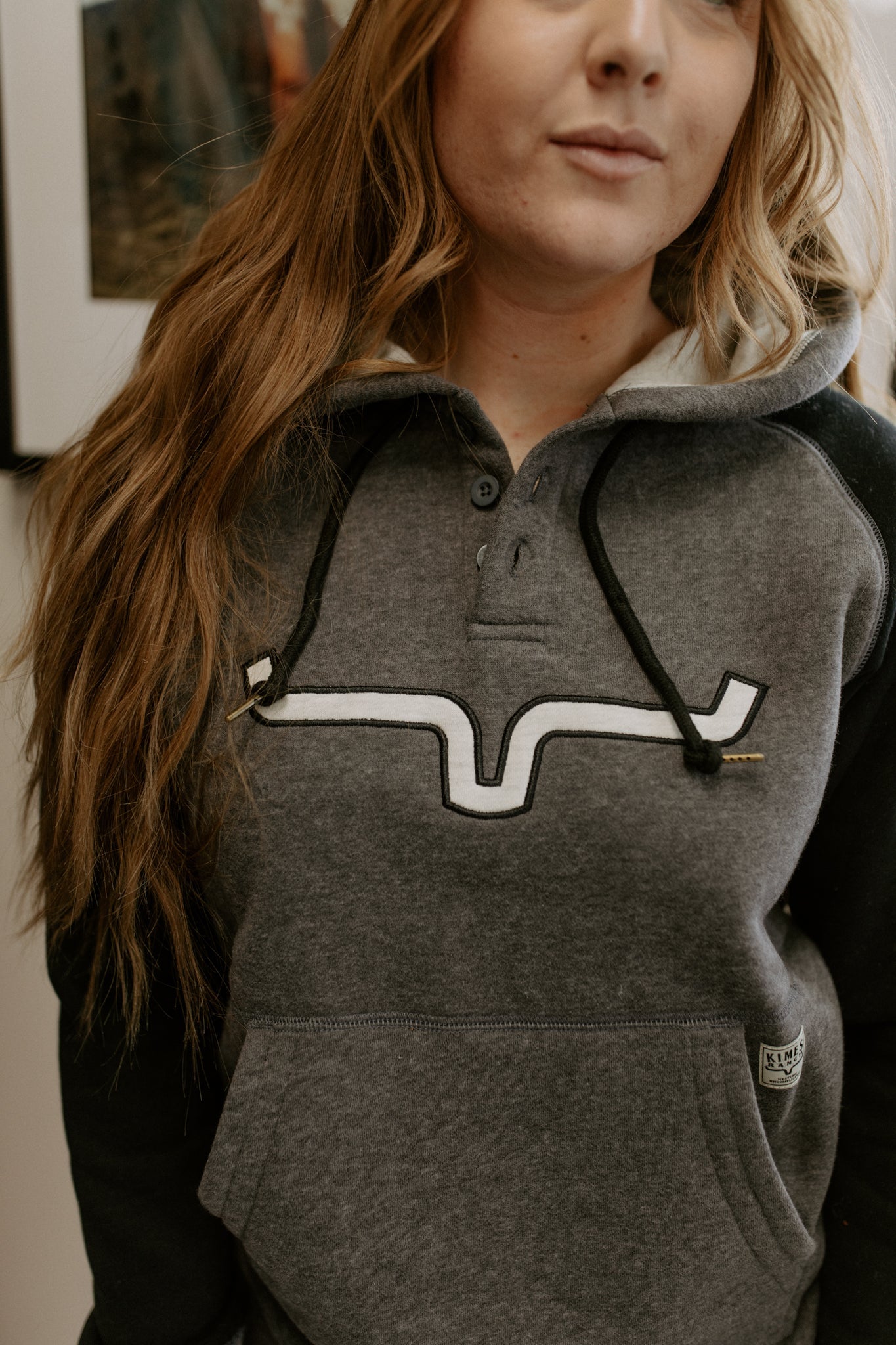 We love these ladies Kimes hoodies! A fitted long sleeve hoodie, the Amigo Hoodie features colorblocking in heavy weight fleece. With a button front placket and an embroidered horm applique at chest, this hoodie will quickly become your got-to favorite.