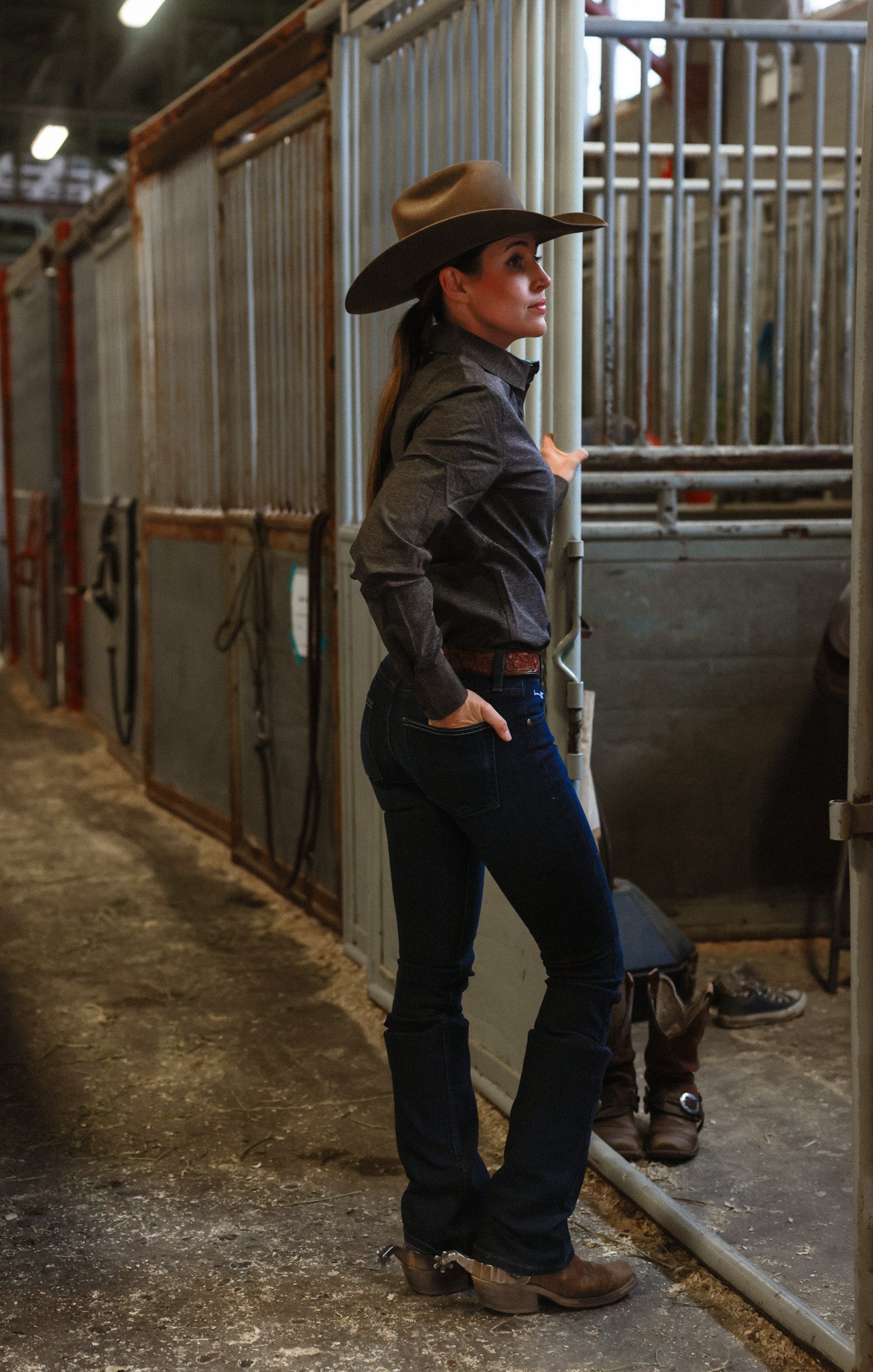 - Performance Low Rise, Fitted Thigh, Modest Boot Cut, Light Hand Sanding. Single Rear Pocket Logo.