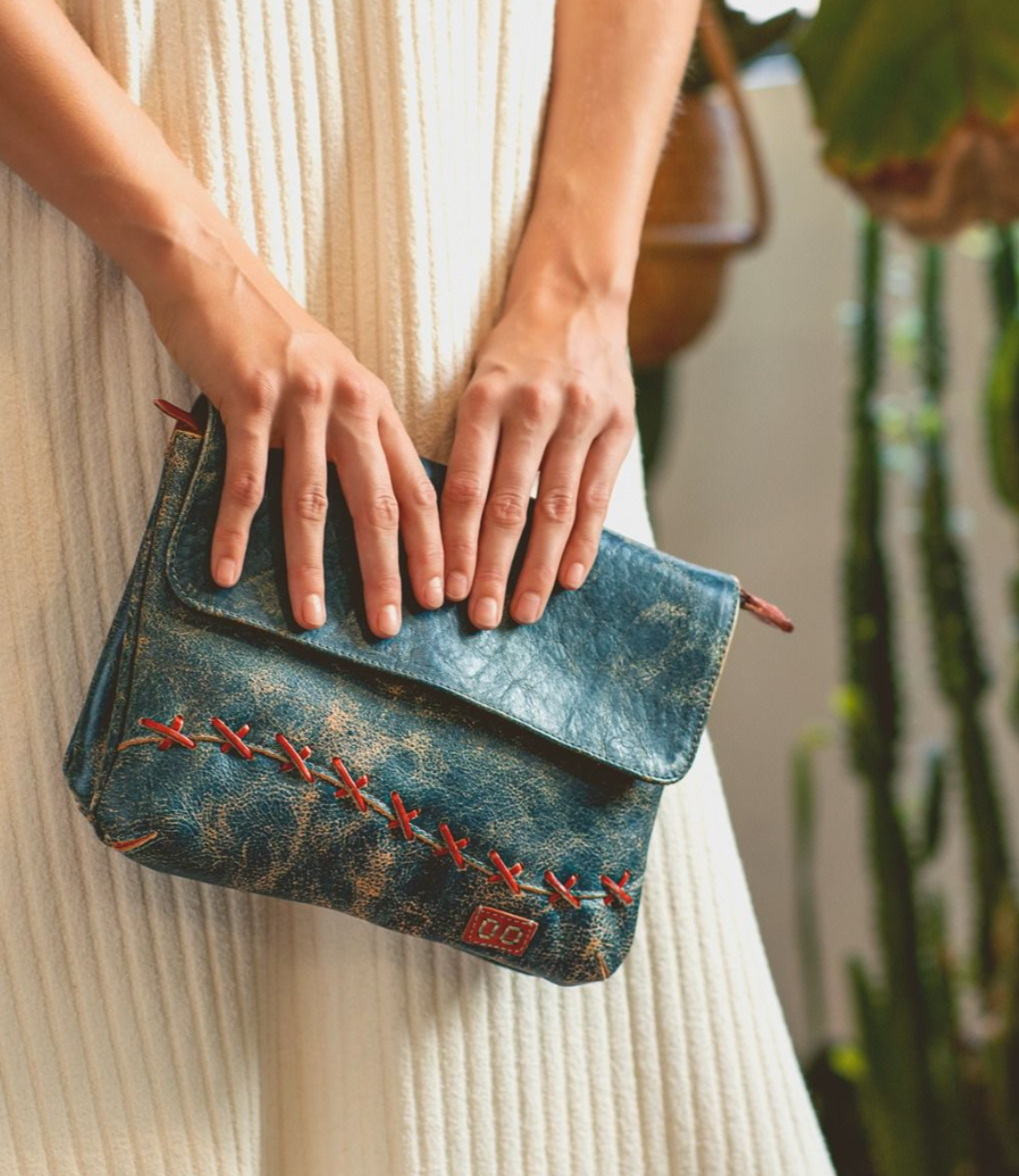 Crossbody cutie, CLEO is making her debut and turning heads. Perfect for an everyday option, CLEO has a zipper top closure for piece of mind safety, and the comfort of being hands free. Pop of contrast leather details give this little cutie character which adds to any outfit, including inlay “xs across the seam on front, and on the adjustable (and removable) to any person height strap. Carry CLEO as a clutch too, for date night or a more sophisticated look.