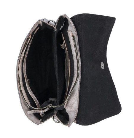 - Fold over flap crossbody with contrasting color adjustable strap, removable strap to make a clutch too