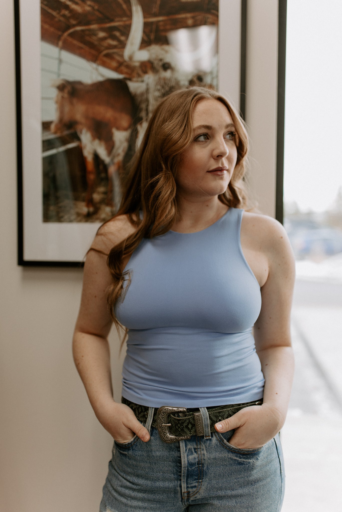 Seamless and supportive, this wear-with-everything cami features a high neckline and cropped silhouette in a buttery soft stretch fabrication.