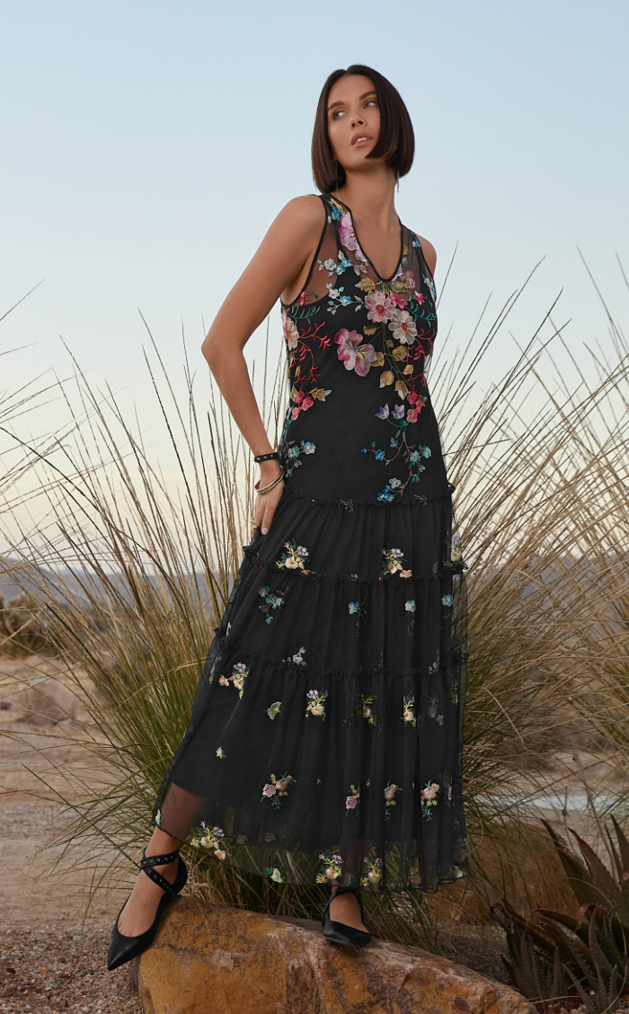 Regular price $178.00 CADBeautifully detailed with vibrant blooms, the Liliana Mesh Dress is perfect for the warmer season. Featuring a V-neckline and fitted bodice, this sleeveless maxi dress is adorned with colorful placement embroidery for a timeless look. Pair with espadrille sandals and add a colorful clutch for a date night ensemble.