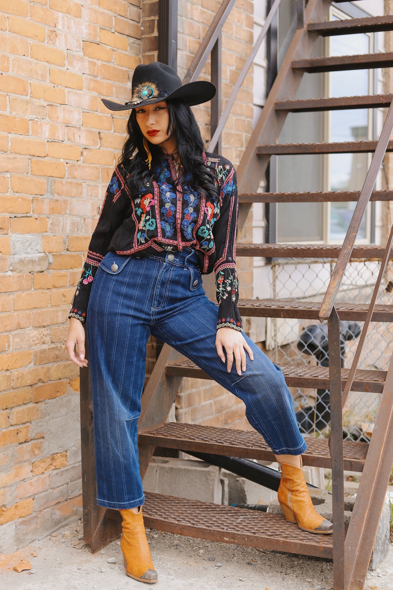 Pinstripe denim pants just scream "I mean business!" Strut your stuff and show 'em you're serious about your style in this high waist denim pair. If you really wanna go all out, wear them with the matching cropped denim jacket for the ultimate rodeo royalty look.