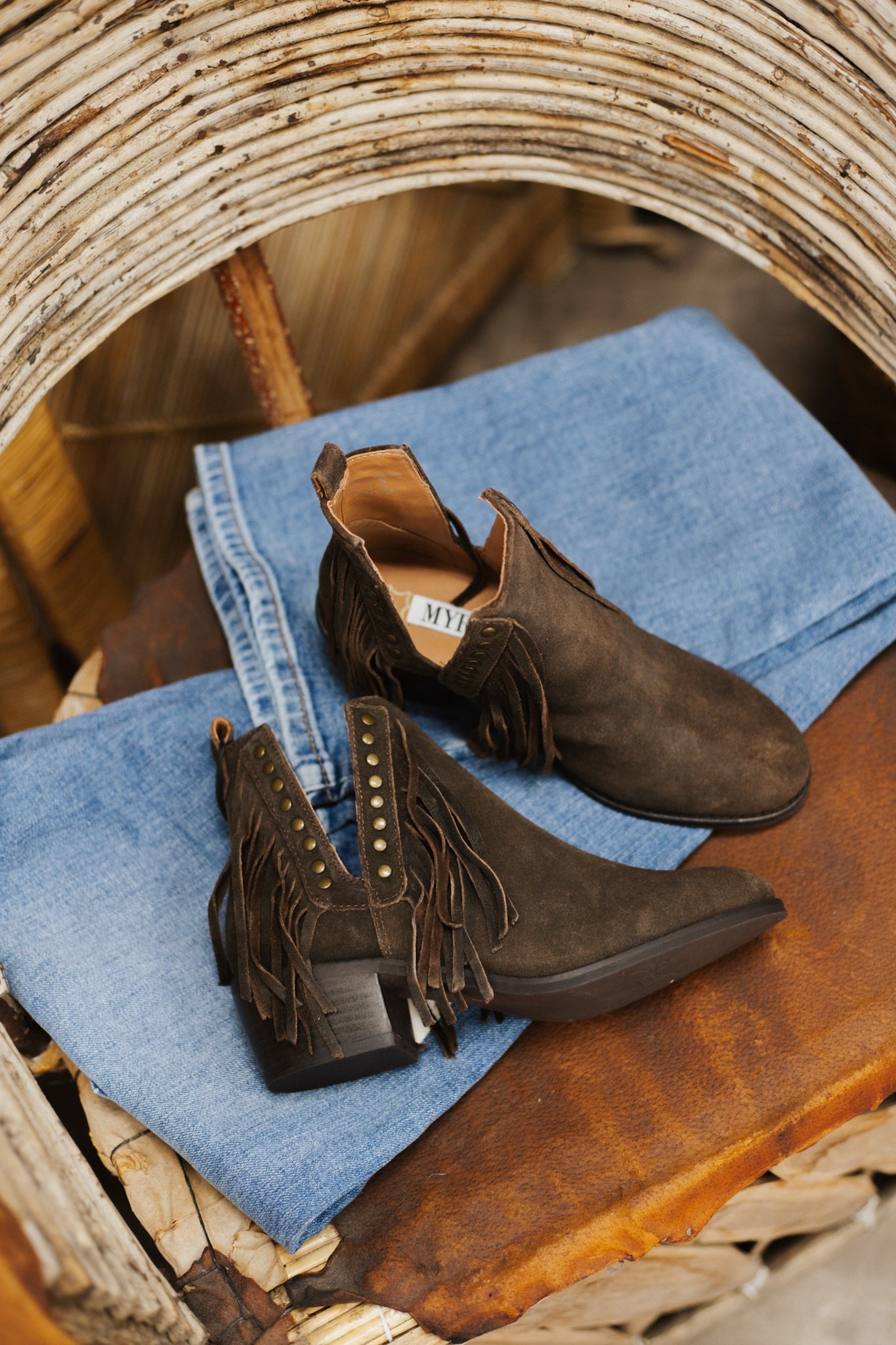 Step into the wild west with our Cyno Booties. Handcrafted from genuine Cyno leather, these booties feature stylish strips of brown fringe and brass rivets. Comfort meets style in these western-inspired booties.