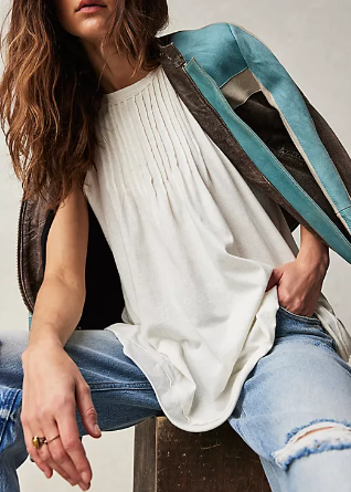 Regular price $45.50 CADJust as effortless as it is essential, this timeless tank is featured in a drapey, flowy fit with defined pleating at the bust, dropped armholes, and subtle distressing at the hems for a truly lived-in look.