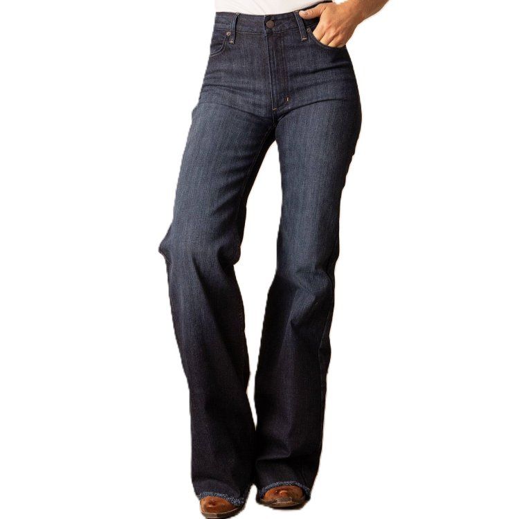 A high-rise stovepipe jean with a wide leg and raw hem, the Olivia is the perfect everyday jean. Made from our innovative tri-blend denim for maximum wearability and rebound, this lightweight jean is accented with our iconic Longhorn logo on both back pockets. Fabric: 82% Cotton | 15% Polyester | 3% ElastineFit: High Rise, Stove Top, Wide Leg with a Raw HemFit Tip: Olivia is most comparable to Sarah in the waist. You are able to size down from your Kimes Ranch size. Olivia also runs long with a raw hem.Details: Hand sanding on light wash denim with whisker detailConstruction: 11.5 Oz. Denim