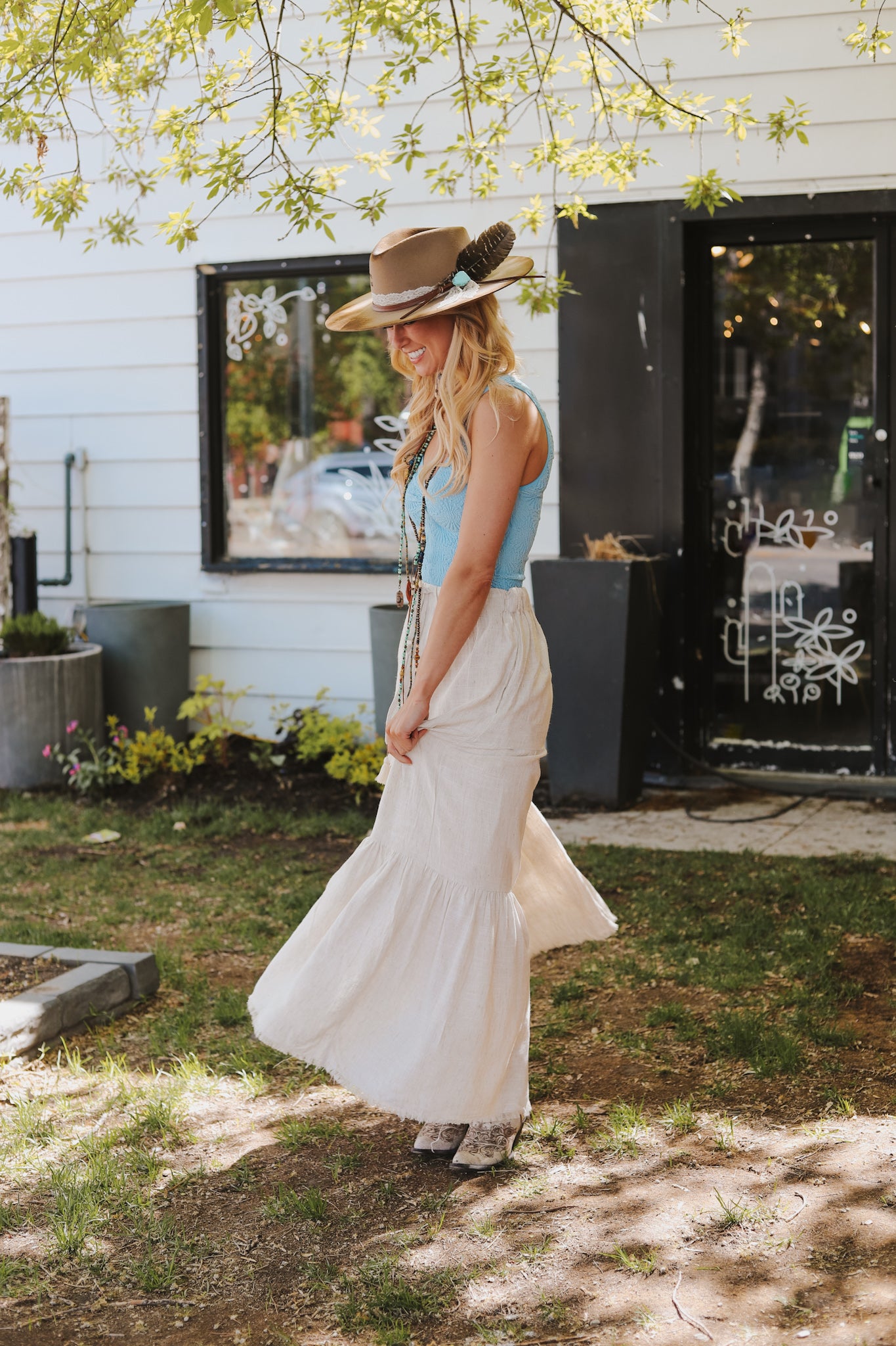 Regular price $99.95 CADThe Maytown Linen Blend Maxi boasts a drawstring waist for a perfect fit. Made with a luxurious linen blend, it offers comfort and style to conquer any day in the Western spirit.