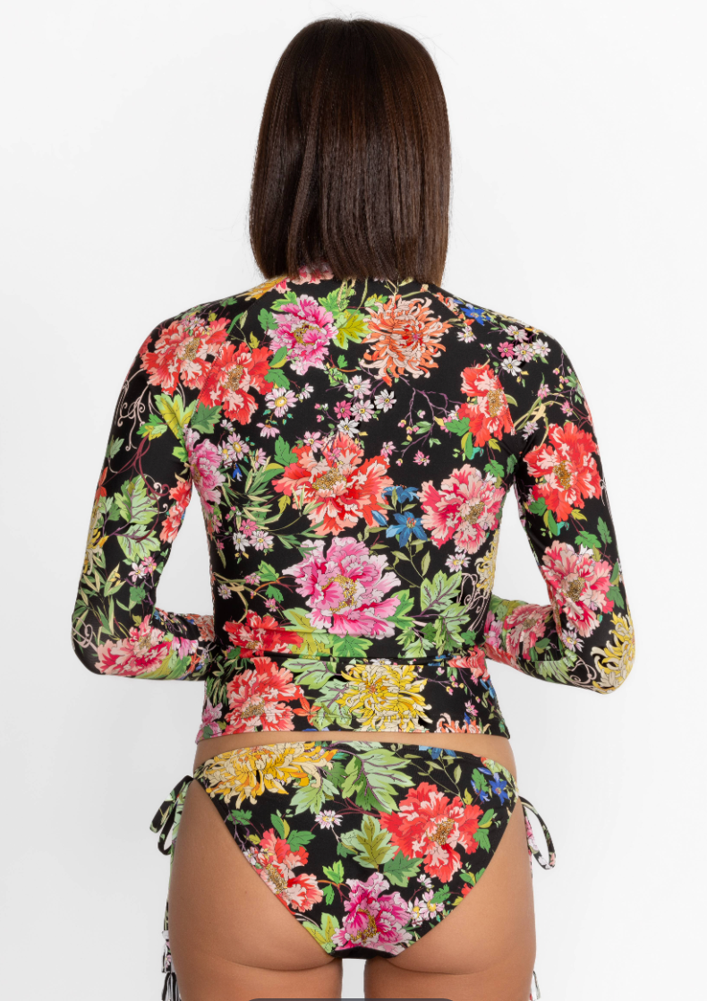 Crafted from a quick-drying fabric with a hint of stretch, the Metalli Notte String Bikini Bottom is adorned with vibrant blossoms. Featuring a traditional bikini cut with side ties, these swim bottoms are finished with decorative tassels. Pair with the Metalli Mix String Bikini Top and the Giorno Ruffle Kimono for an unforgettable poolside look