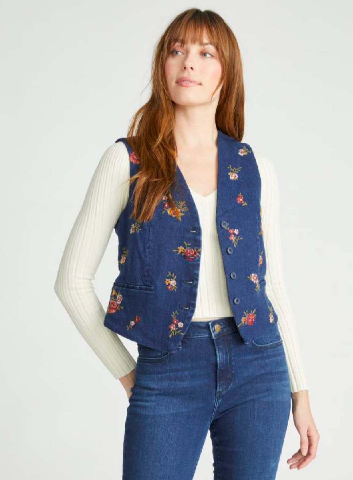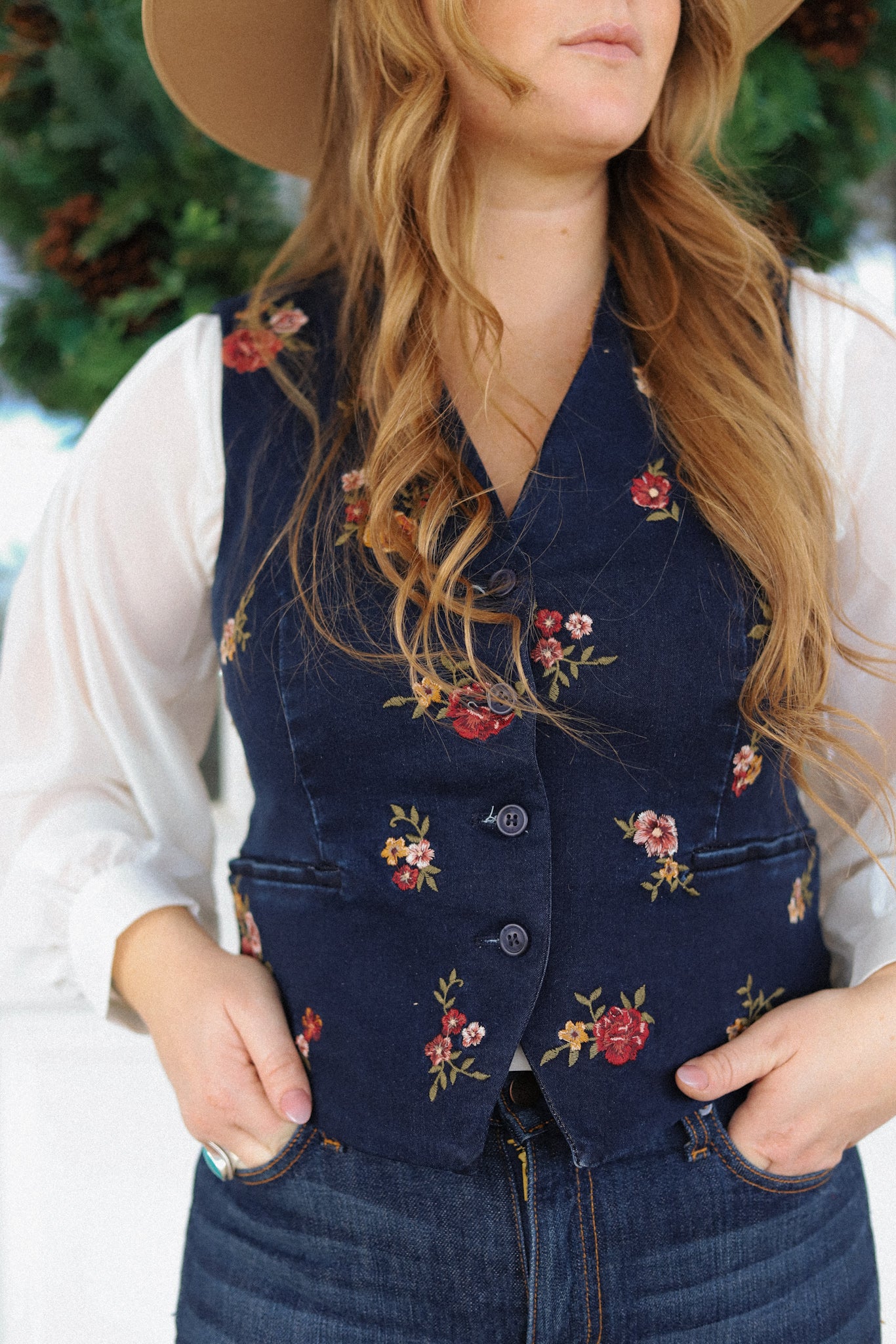 Regular price $119.95 CADOur new favorite denim vest with embroidery. A comfortable and flattering fit! A versatile, stylish piece for everyday wear. With the perfect balance of comfort and flattering design, you can look great while staying cozy.