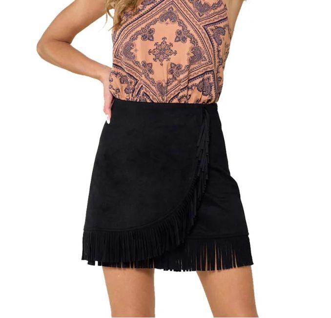 SAINTS & HEARTS Suede Fringe Wrap Skirt