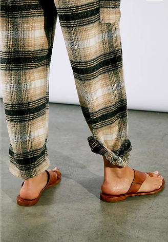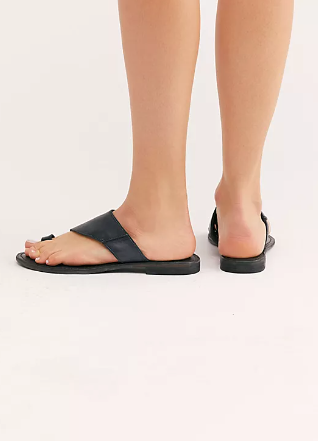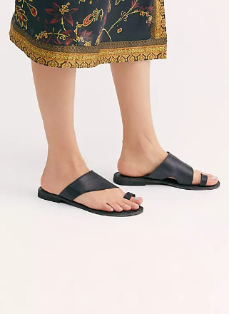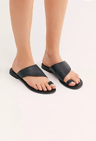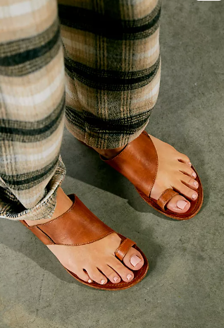 Simple leather sandals featuring an asymmetric strap and toe loop with a worn-in washed look.
