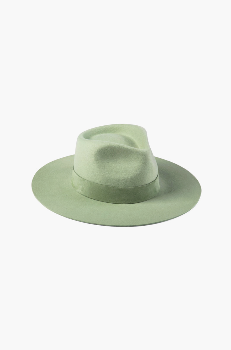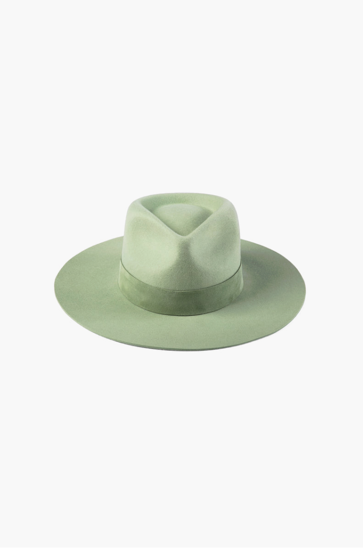 - Sage fedora hat, trimmed with soft 100% genuine suede band.