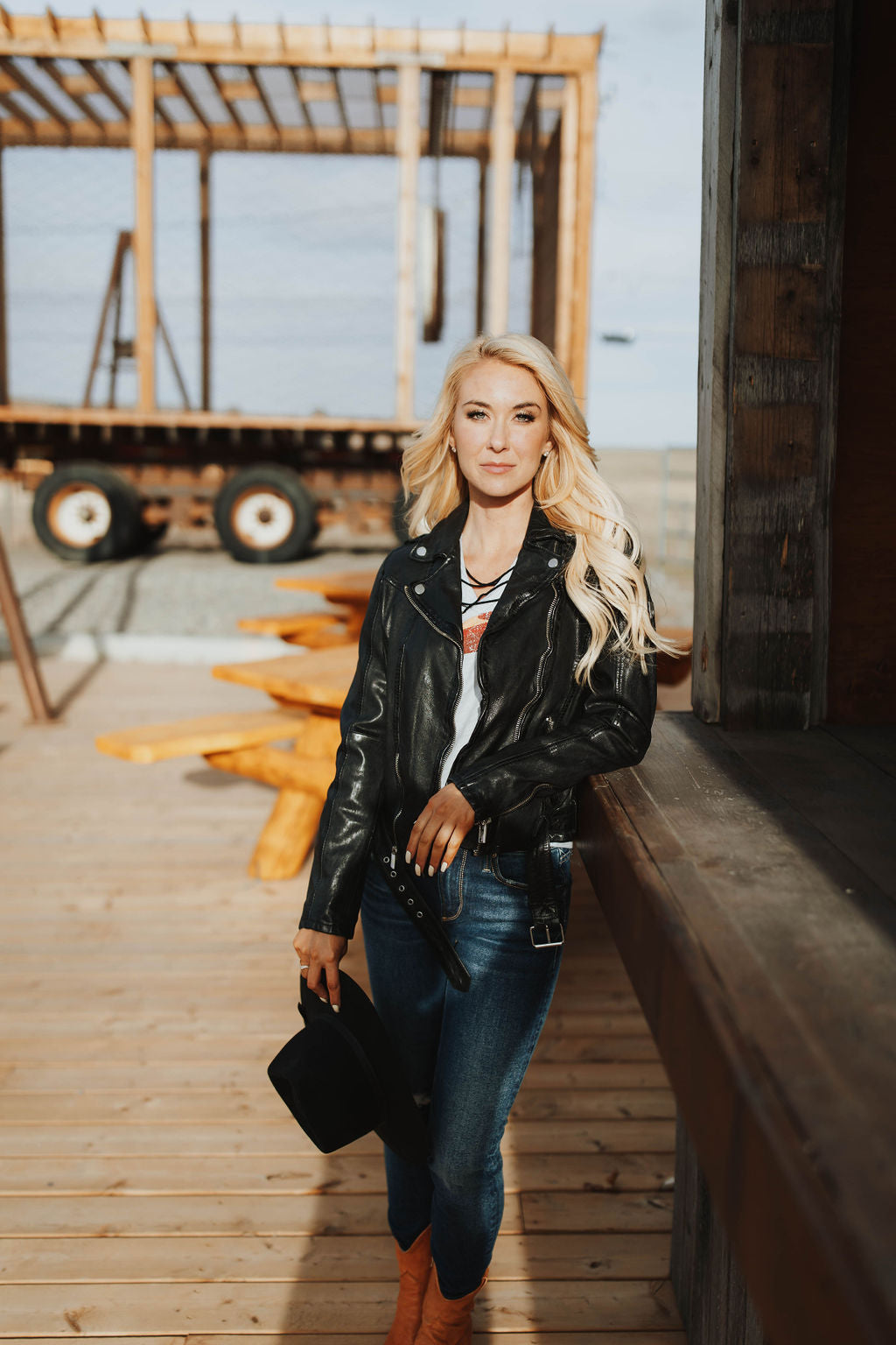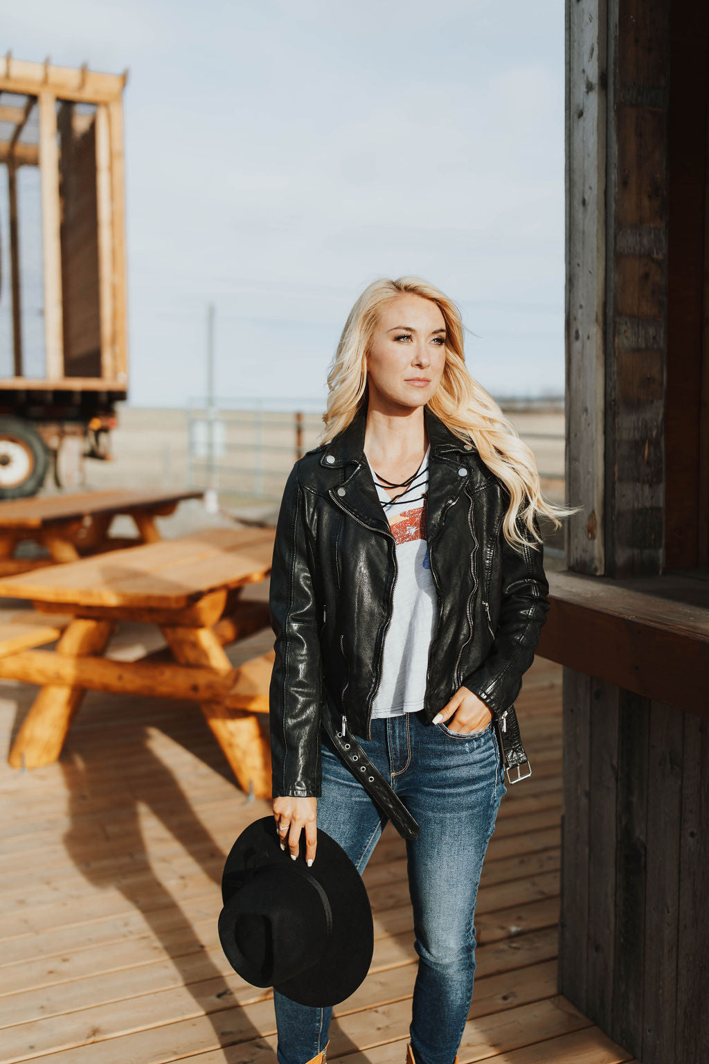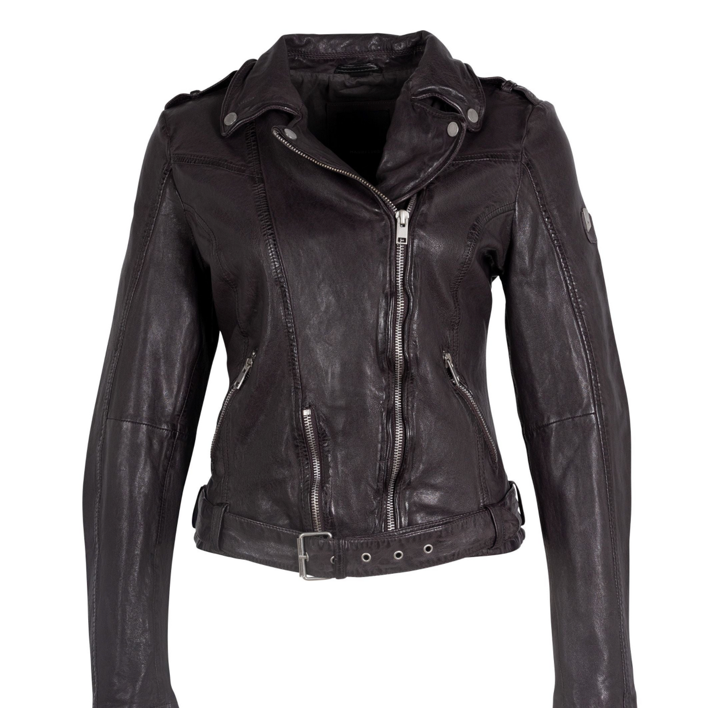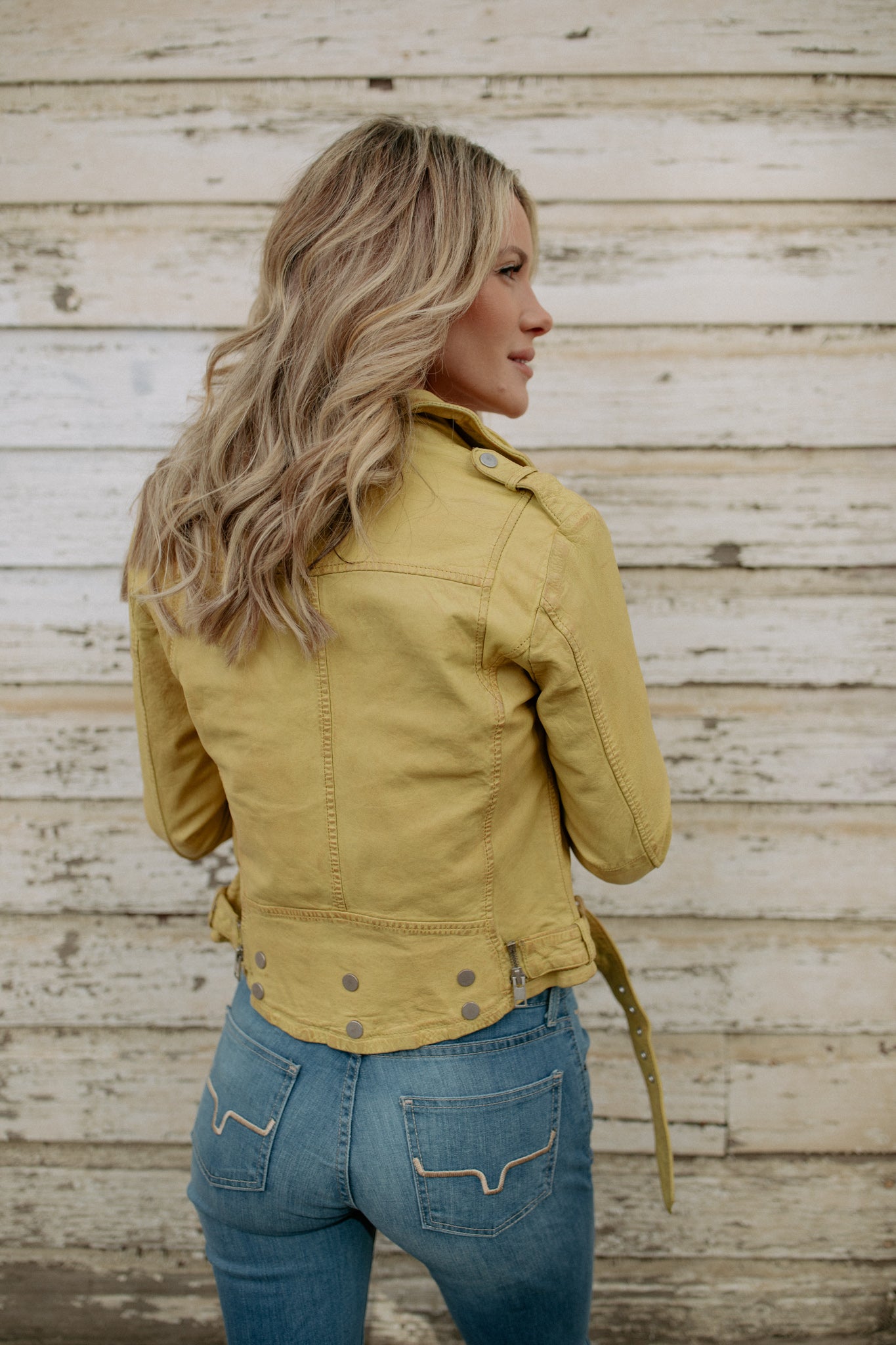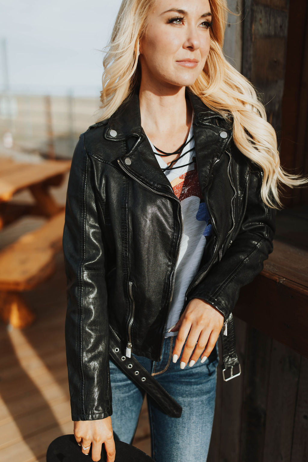 This leather jacket features enough embellishment to walk the line between elegant and edgy. You can dress this jacket casual while you're on the go, or class it up for a night out. The perfect fit, Wild features a detailed collar and belt around the waist making a snug style.
