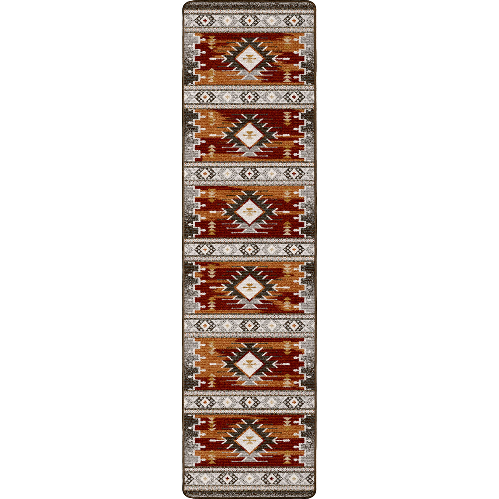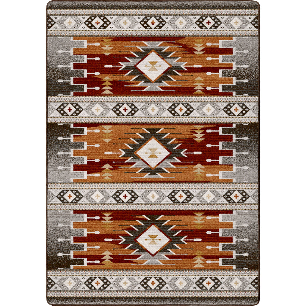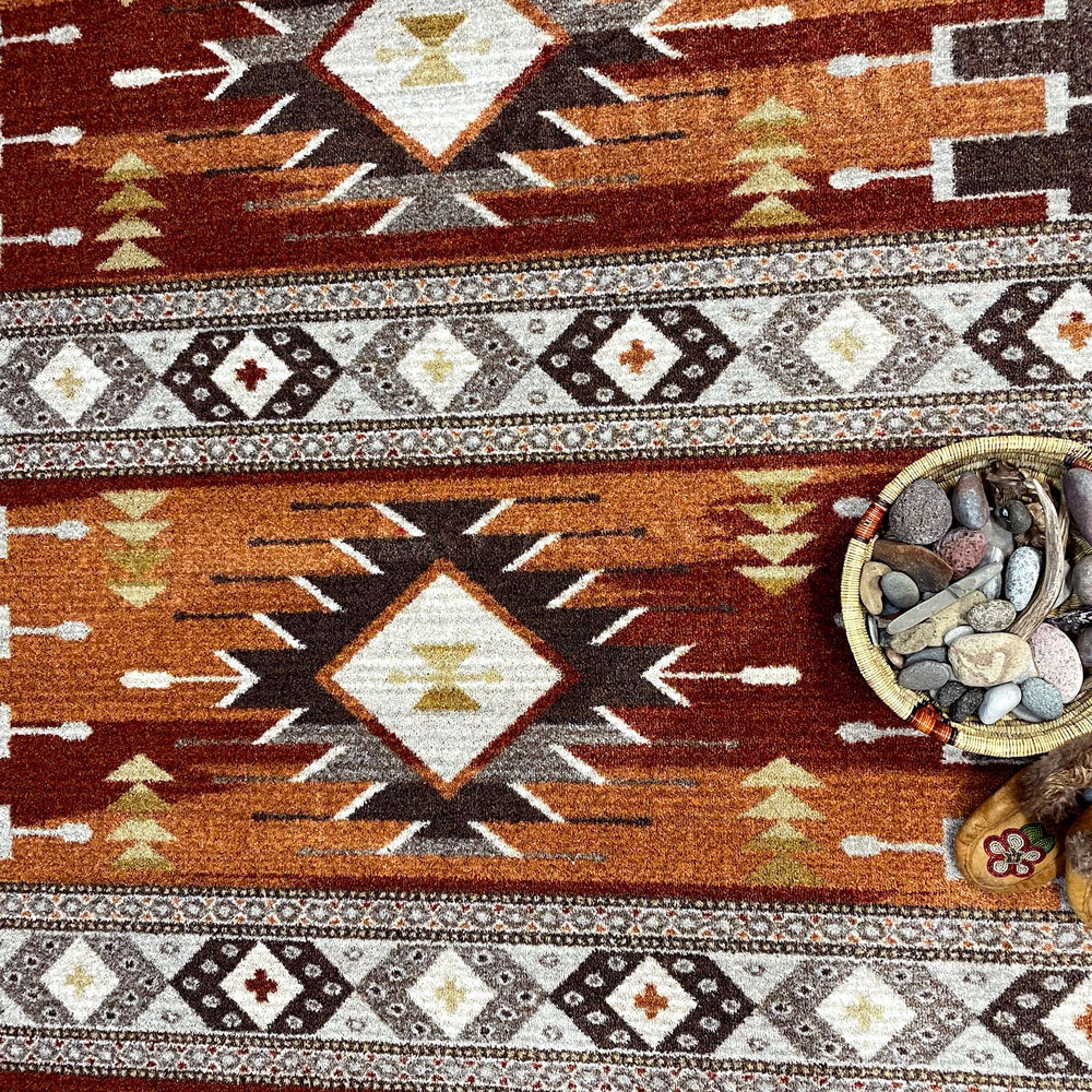 These fine Southwest-inspired area rugs are made in the U.S. on American machines. Colors are inspired by the plant and mineral dyes found in the Southwest and Native American art. These designs look perfect in your home, cabin or workplace.