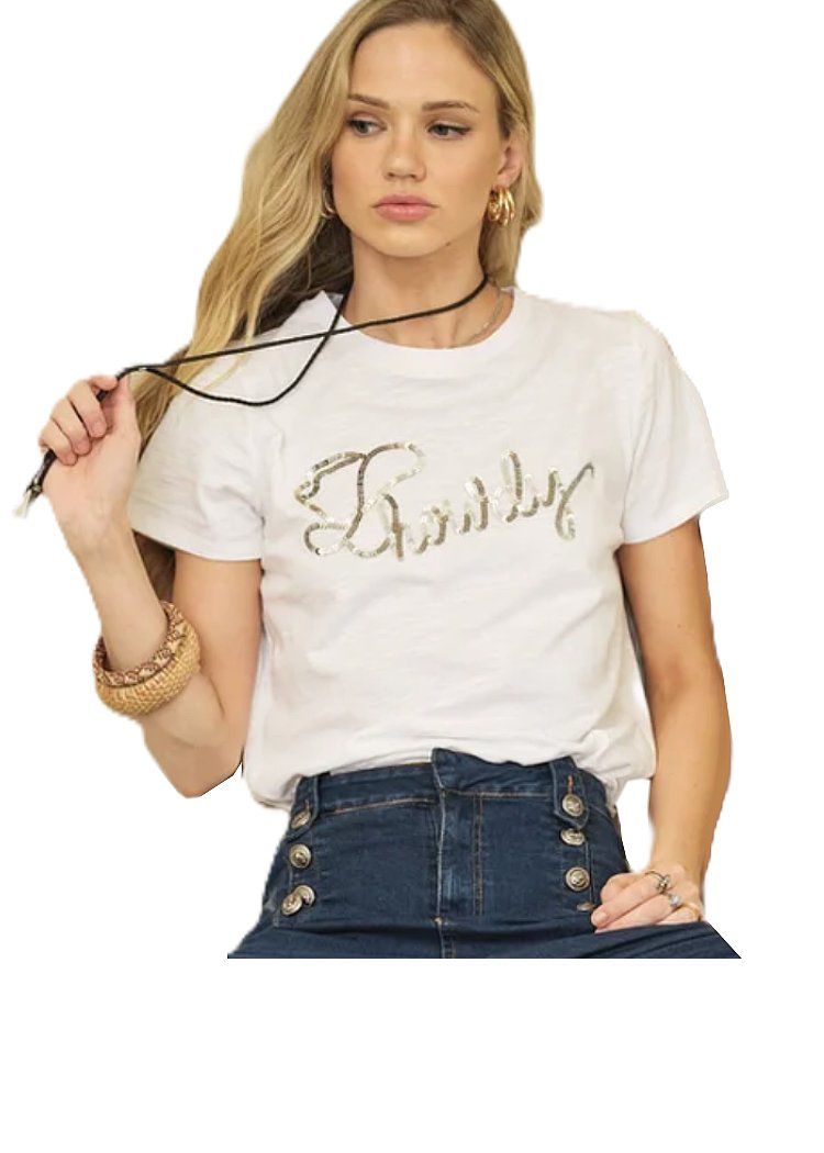 BLUE B Western Howdy Sequin Greeting Slub Graphic T-Shirt