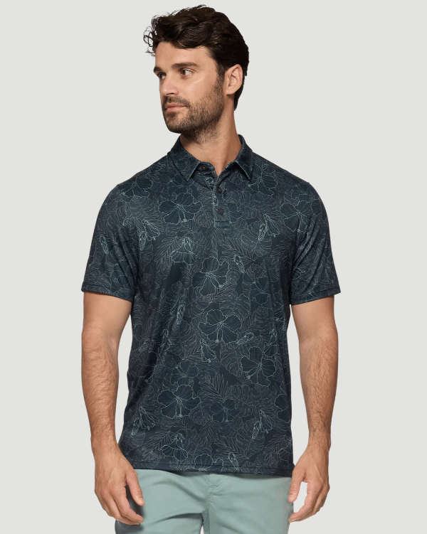 FLAG & ANTHEM Manteca SS All Over Floral Print Performance Polo