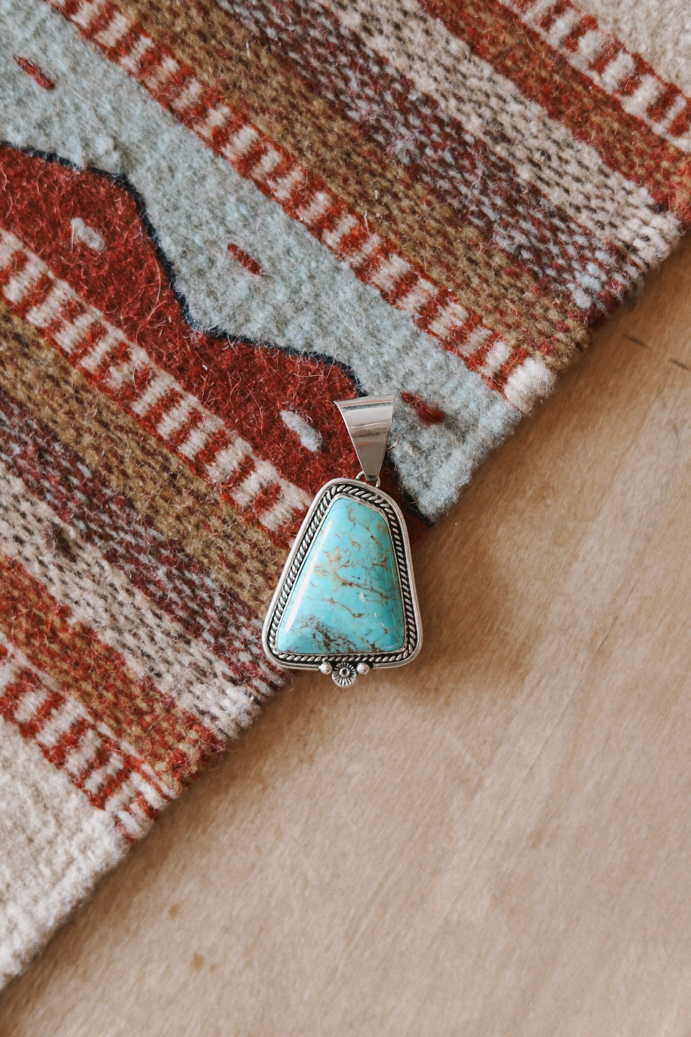 The Gloria Pendant features a beautiful turquoise stone set in sterling silver.